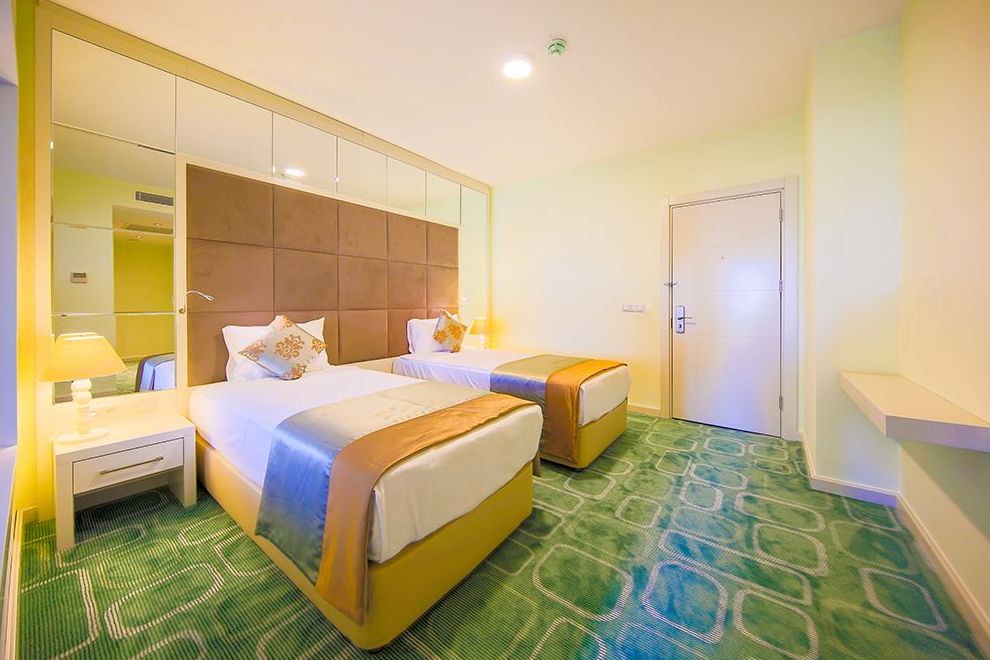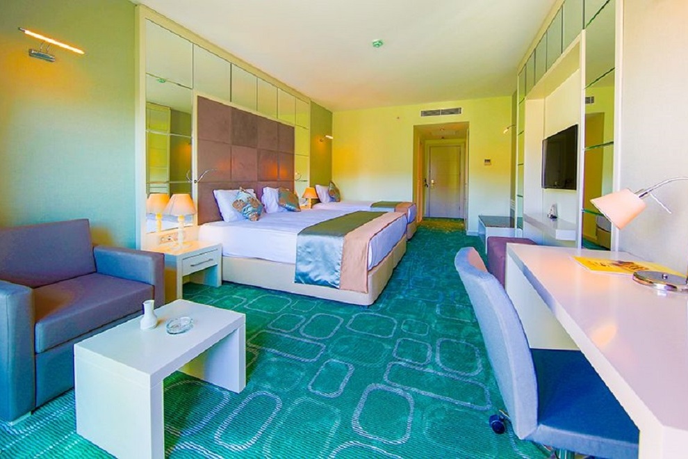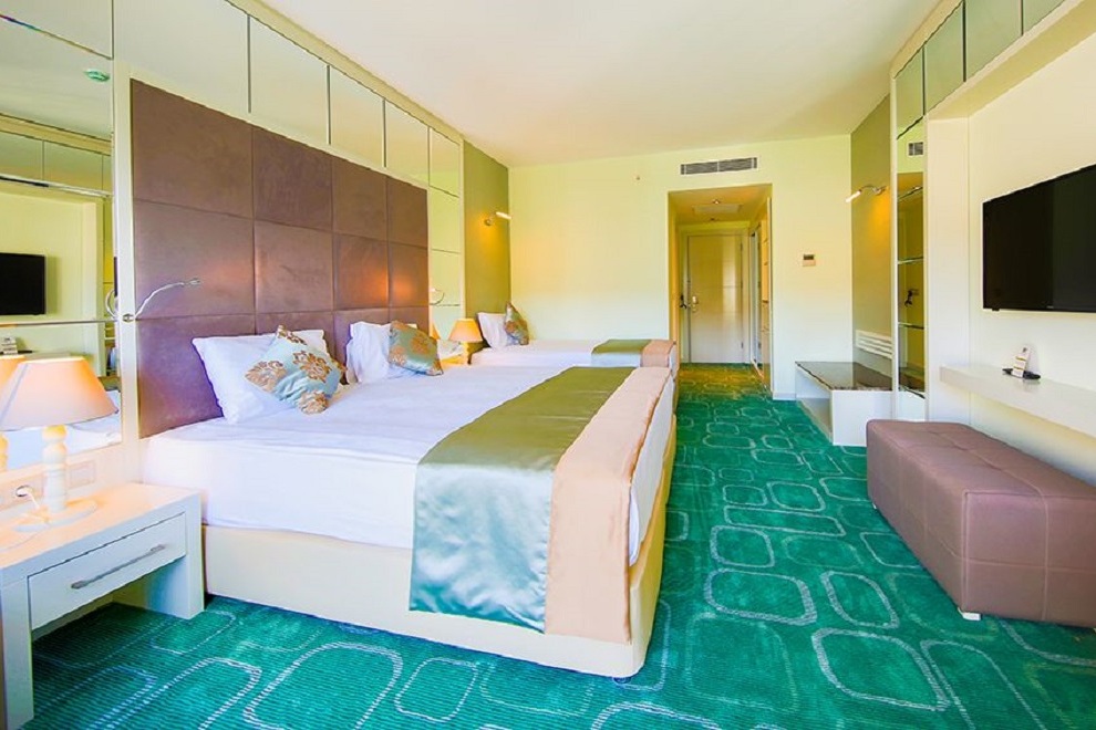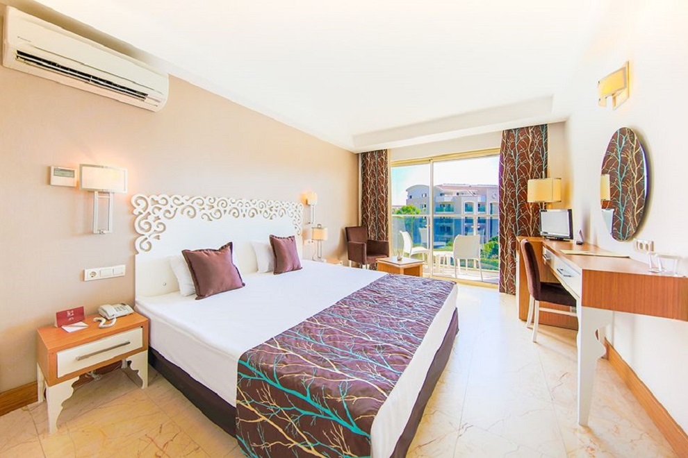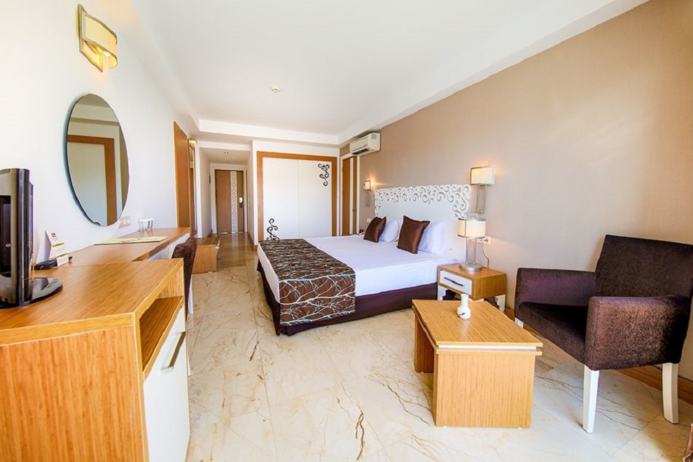 Хотелът се състои от един 7-етажен корпус Hotel, в който има 213 стаи с изглед към морето, градината или града; 11 корпуса Garden, които са 2-3 етажни и предлагат гледка към морето; 2 нови 5-етажни Resort, които се намират през пътя, близо до хотела. Хотелът посреща гостите си в 750 стаи. В основната сграда стаите имат централен климатик, а в клубната част са с индивидуален климатик. Стаите са оборудвани с минибар (вода и минерална вода - зарежда се ежедневно), сателитна телевизия, музикален канал, директен телефон, баня, сешоар, сейф (безплатно), Wi-Fi (платен), под - ламинат / дърво в основната сграда, керамични плочки в бунгалото. Стаите се почистват всеки ден, спалното бельо се сменя 3 пъти седмично.