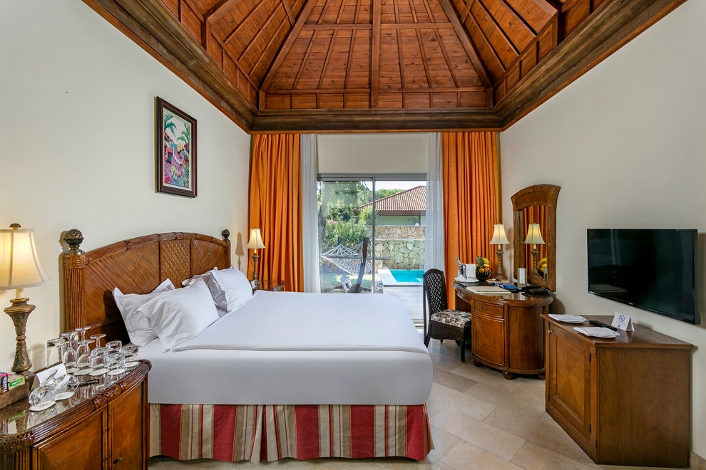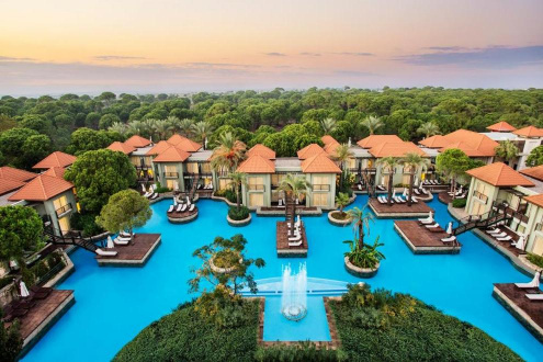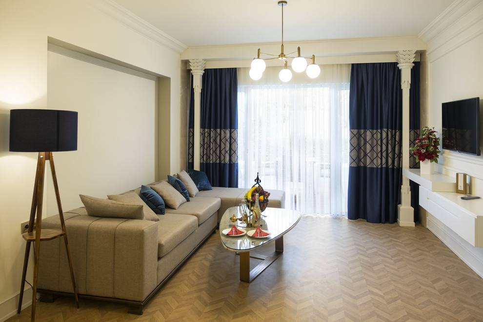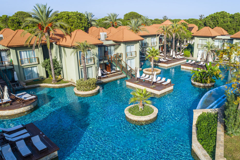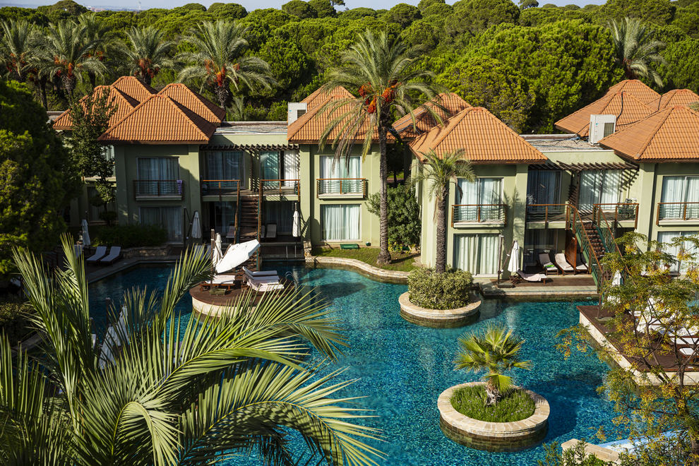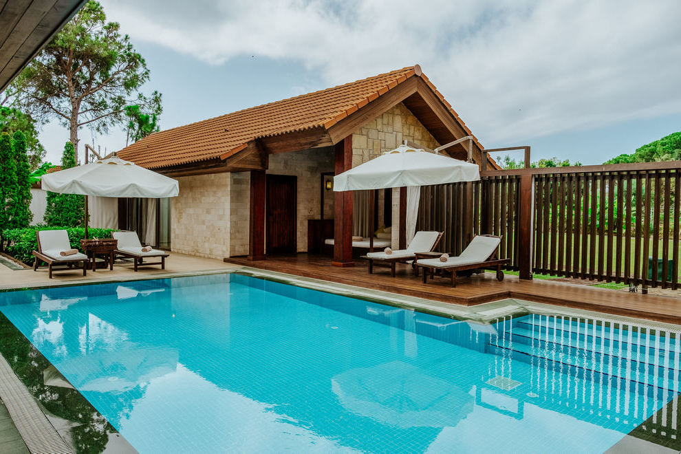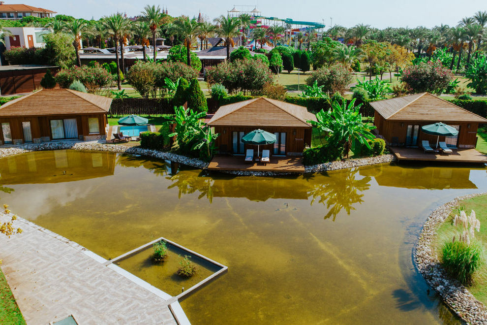 Хотелът се състои от 44 двуетажни и едноетажни вили. 31 отделни Lake Villa: 28 тристайни Lake Villa (хол, 2 спални с врата, 2 бани: едната с душ, другата с вана, макс. 4+2 чов., 65 кв.м, VIP-обслужване); 3 петстайни Lake Deluxe Villa (хол, 4 спални с врати, 4 бани: 2 с вана и 2 с душ (в 1-вата от Lake Deluxe Villa 3 бани); макс. 8 чов., 130 кв.м., VIP-обслужване); 13 отделни Bali Villa (градински вили, заобиколени с ограда): 3 двустайни Bali Villa (хол на открито, 2 спални с врата, 2 бани: едната с джакузи и душ, другата с вана, 2 телевизора, собствен басейн (20 кв.м), макс. 4+2 чов., обща площ 300 мкв.м, жилищна площ 54 кв.м, отделна оградена градина, VIP-обслужване); 4 тристайни Bali Deluxe Villa (хол, мини-кухня, 2 спални с врата, 2 бани: едната с джакузи и душ, другата с вана, 3 телевизора, собствен басейн (35 мкв.м.), макс. 4+2 чов., обща площ 170 кв.м, жилищна площ 105 кв.м, градина, VIP-обслужване); 1 едностайна Bali Junior Villa (french bed, баня с джакузи и душ, басейн (24 кв.м), макс. 2+1 чов., 54 кв.м, VIP-обслужване); 4 четиристайни Superior Deluxe Villa (хол, американска кухня, бар, 3 спални с врати, 3 бани: едната с джакузи, две с душ, 4 телевизора, тераса, турска баня, собствен басейн (38 кв.м), макс. 6+2 чов., обща площ 396 кв.м, жилищна площ 202 кв.м, отделна оградена територия, VIP-обслужване). В климатизираните стаи има телевизор, телефон, сейф, минибар, Wi-Fi, баня с вана и сешоар. Стаите се почистват ежедневно. Спалното бельо се сменя ежедневно.