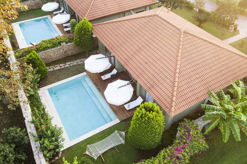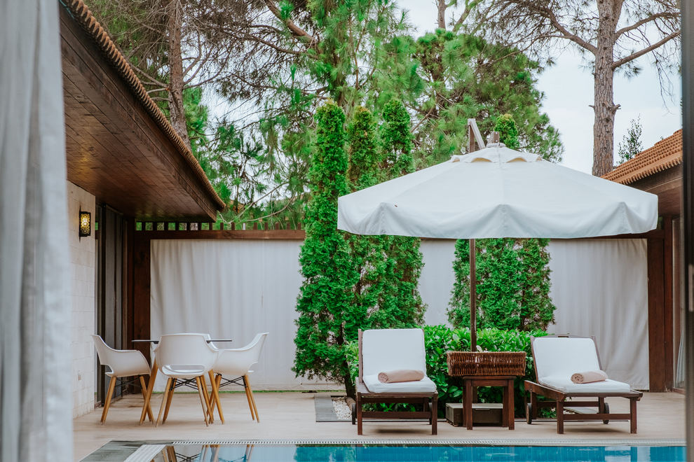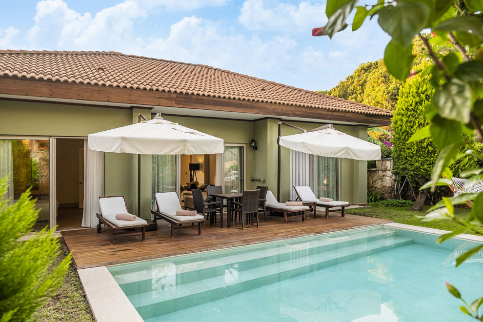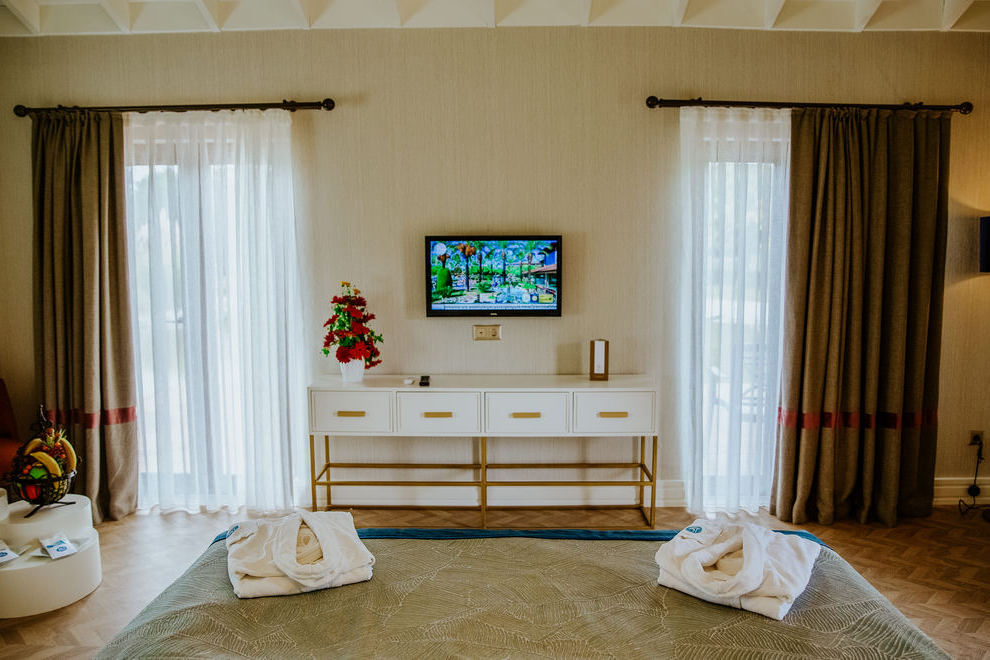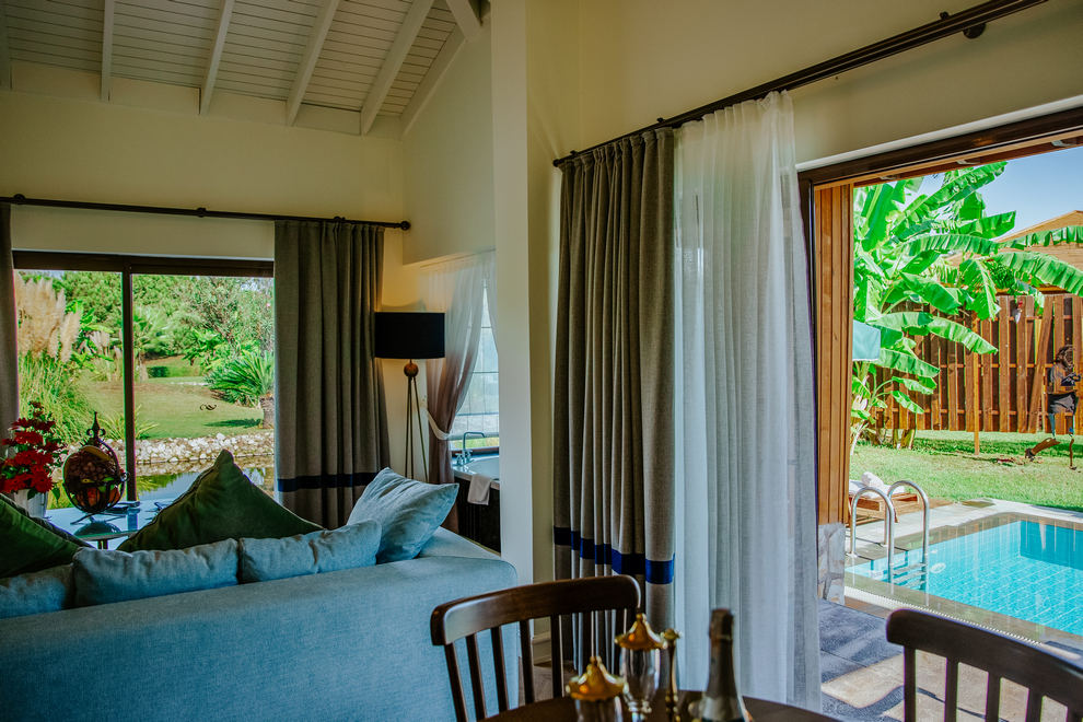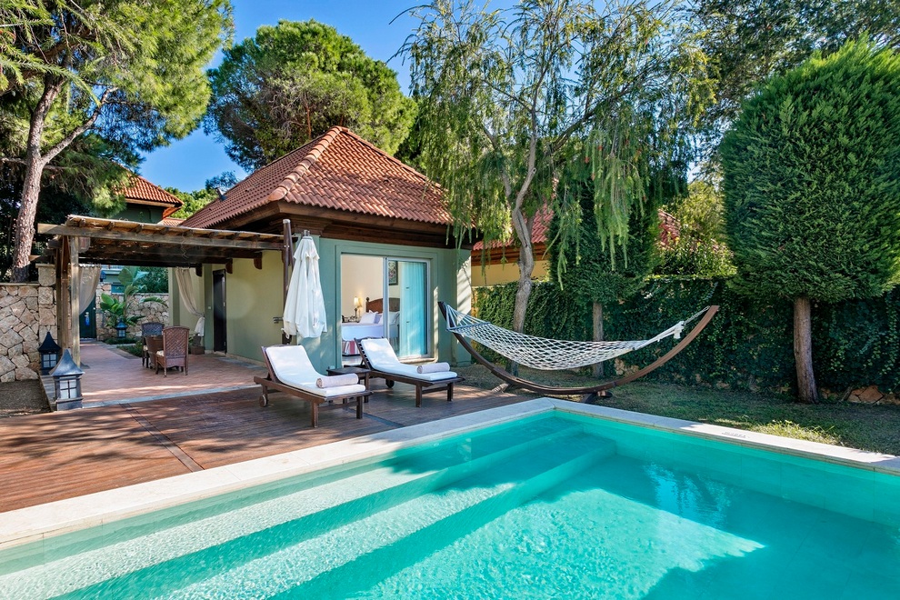 Хотелът се състои от 44 двуетажни и едноетажни вили. 31 отделни Lake Villa: 28 тристайни Lake Villa (хол, 2 спални с врата, 2 бани: едната с душ, другата с вана, макс. 4+2 чов., 65 кв.м, VIP-обслужване); 3 петстайни Lake Deluxe Villa (хол, 4 спални с врати, 4 бани: 2 с вана и 2 с душ (в 1-вата от Lake Deluxe Villa 3 бани); макс. 8 чов., 130 кв.м., VIP-обслужване); 13 отделни Bali Villa (градински вили, заобиколени с ограда): 3 двустайни Bali Villa (хол на открито, 2 спални с врата, 2 бани: едната с джакузи и душ, другата с вана, 2 телевизора, собствен басейн (20 кв.м), макс. 4+2 чов., обща площ 300 мкв.м, жилищна площ 54 кв.м, отделна оградена градина, VIP-обслужване); 4 тристайни Bali Deluxe Villa (хол, мини-кухня, 2 спални с врата, 2 бани: едната с джакузи и душ, другата с вана, 3 телевизора, собствен басейн (35 мкв.м.), макс. 4+2 чов., обща площ 170 кв.м, жилищна площ 105 кв.м, градина, VIP-обслужване); 1 едностайна Bali Junior Villa (french bed, баня с джакузи и душ, басейн (24 кв.м), макс. 2+1 чов., 54 кв.м, VIP-обслужване); 4 четиристайни Superior Deluxe Villa (хол, американска кухня, бар, 3 спални с врати, 3 бани: едната с джакузи, две с душ, 4 телевизора, тераса, турска баня, собствен басейн (38 кв.м), макс. 6+2 чов., обща площ 396 кв.м, жилищна площ 202 кв.м, отделна оградена територия, VIP-обслужване). В климатизираните стаи има телевизор, телефон, сейф, минибар, Wi-Fi, баня с вана и сешоар. Стаите се почистват ежедневно. Спалното бельо се сменя ежедневно.