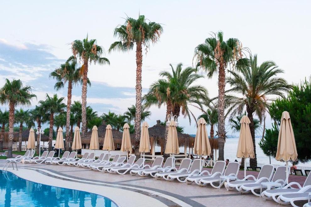 Плажът е на първа линия, на 300 метра от хотела. Има два кея и бар на плажа. За удобството на своите гости хотелът предлага открит басейн и тераса за слънчеви бани. На плажа и при басейна чадъри и шезлонги се предоставят безплатно, а плажни кърпи – срещу депозит.