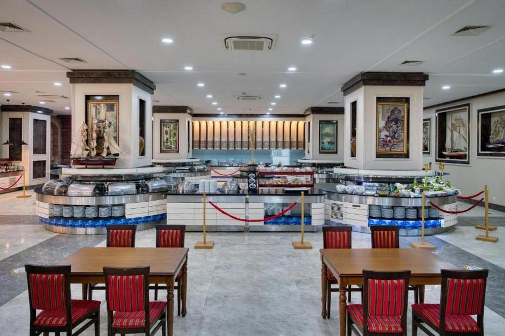 На разположение на гостите са основен ресторант, 2 a`лa карт ресторанта, в които се предлагат турска кухня и рибно меню (за целия престой се полага 1 посещение на един ресторант - безплатно ). Разнообразни напитки се предлага в 4 бара: лоби бар, бар при басейна, бар на плажа, диско бар.