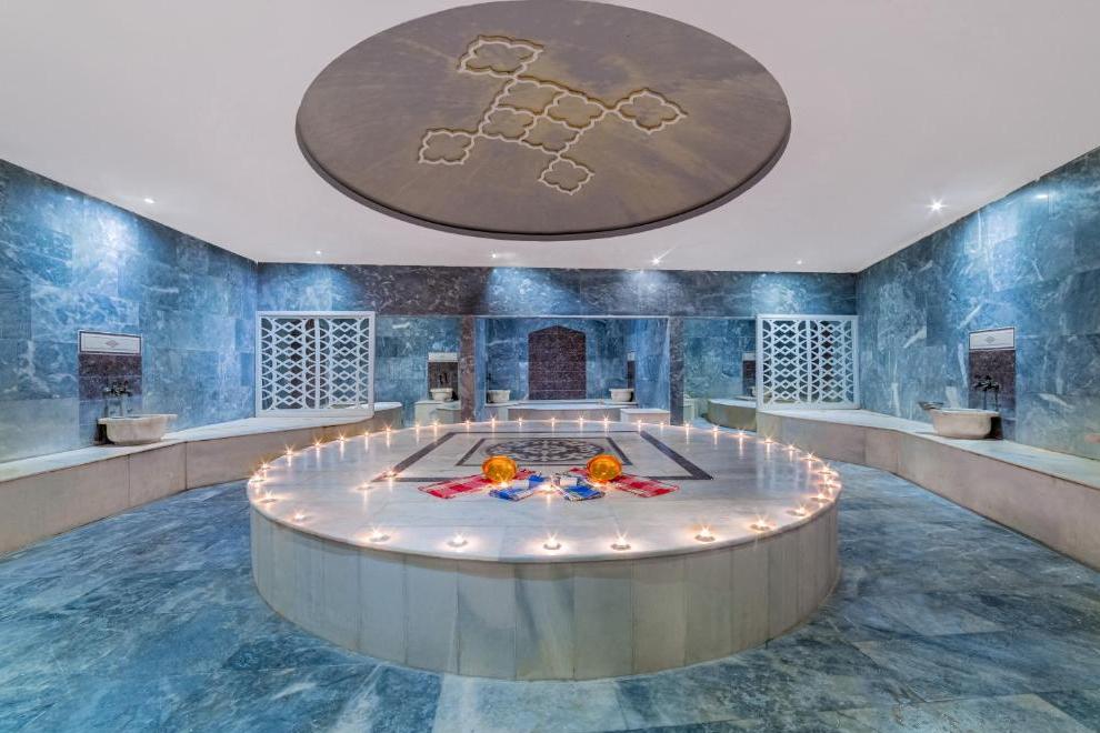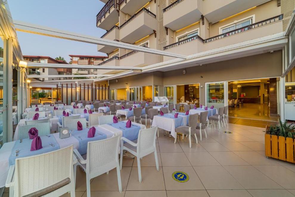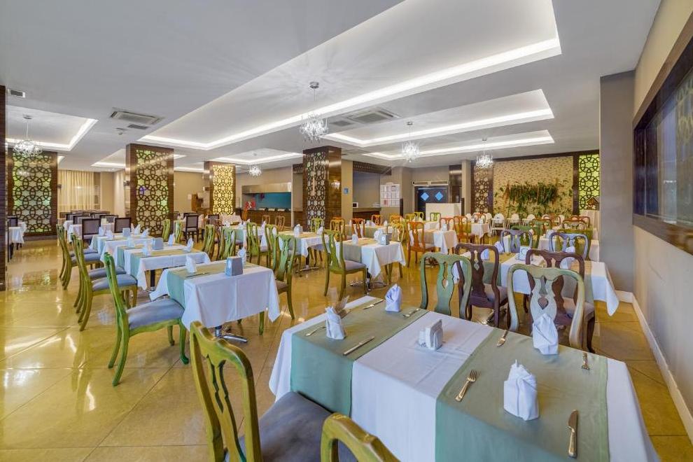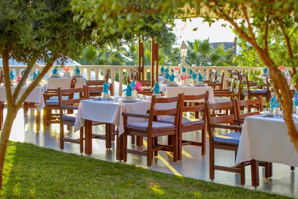 На разположение на гостите са основен ресторант и турски а`ла карт ресторант, гюзлеме кът и сладкарница. Освежаващи напитки и закуски се поднасят в лоби бар, бар при басейна, диско бар, Moonlight Bar, Theodora Bar.