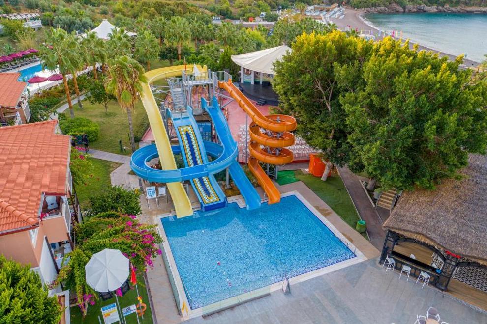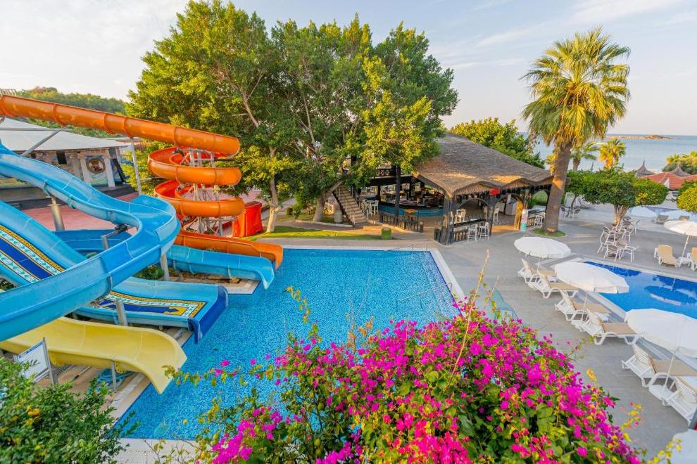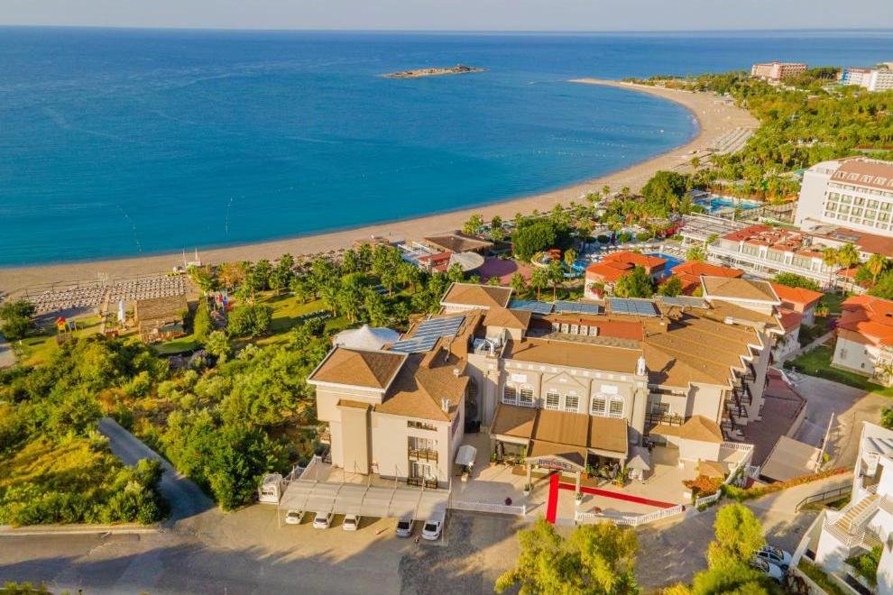 Прекрасен хотел за семейна почивка с деца. Добра анимация, модерни и просторни стаи, разположени в основната 7-етажна сграда на брега на морето и допълнителна 7-етажна сграда Theodora building (срещу пътя, 300 м до плажа). СПА център, основен ресторант, гюзлеме кът и слакарница. Собствен пясъчно-чакълест плаж, открит и закрит басейн, детска анимация и миниклуб.