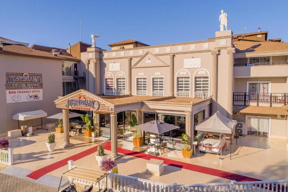 Хотелът се намира в района на Алания, на 95 км от летище Анталия, в село Окурджалар. Гостите на хотела могат да ползват следните услуги на съседния хотел Justiniano Club Alanya: бар на басейна с водни пързалки, басейн с пързалки, основен басейн по време на анимационни програми. Прекрасен хотел за семейна почивка с деца. Добра анимация, модерни и просторни стаи.