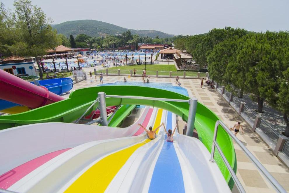 Собствен пясъчен плаж, притежател на сертификат "Син флаг". Предлага 2 открити басейна с прясна вода (неотопляеми), с площ 1080 кв.м. и 271 кв.м. Работно време: 08:00-18:00 ч. 5 водни пързалки (неотопляеми), работно време 10:00-12:00 ч./14:00-16:30 ч. Чадъри, шезлонги и матраци при басейните и на плажа се предоставят безплатно.