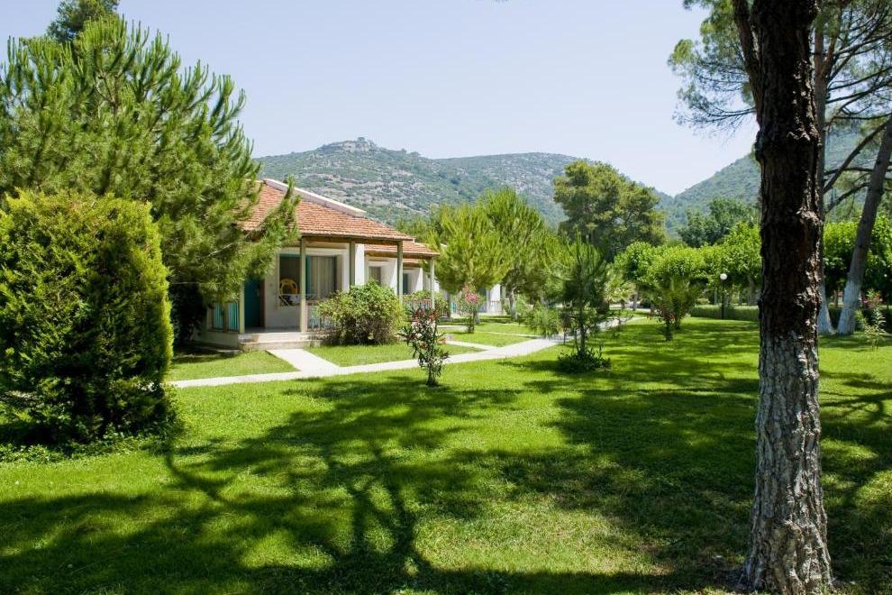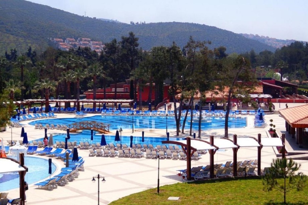 Kustur Club Holiday Village се намира на 130 км от летище "Милас", на 3 км от центъра на Кушадасъ, на огромна зелена територия, на брега на морето. Препоръчва се за семеен отдих.