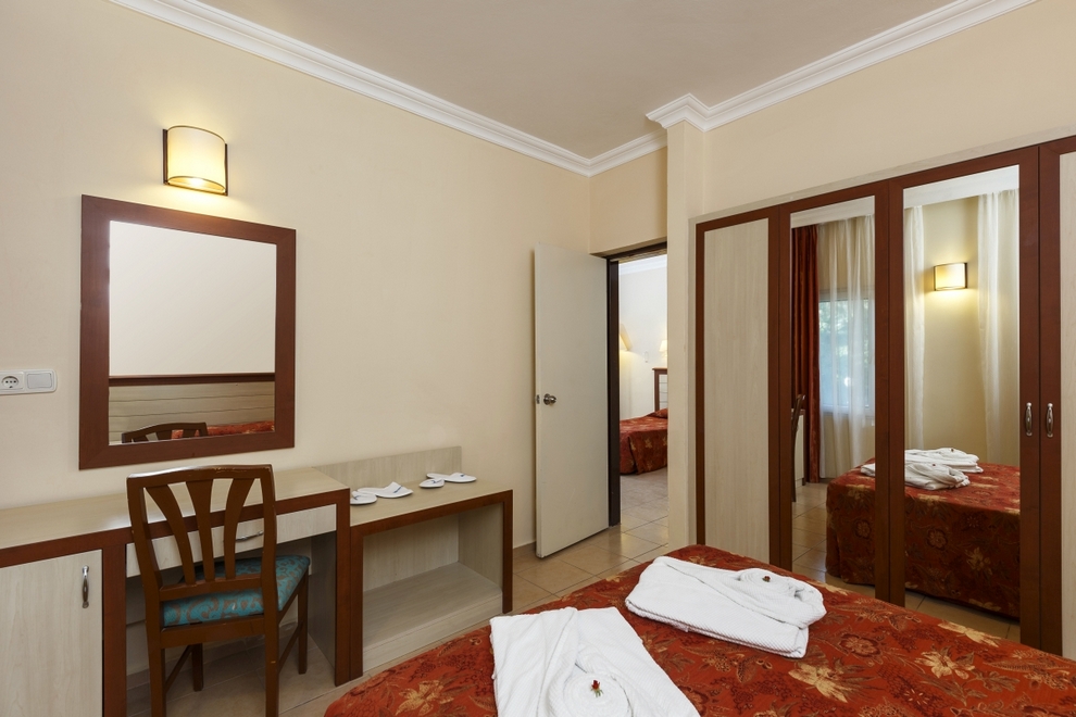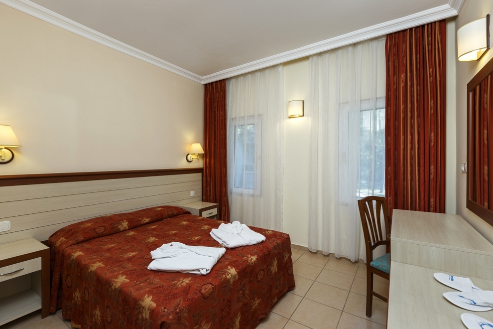 Хотелът се със44 двуетажни и 14 едноетажни сгради, в които са разпределени 450 климатизирани стаи, които имат телевизор, телефон, минибар (зареден при настаняване), сейф, баня с вана или душ, сешоар, безплатни тоалетни принадлежности, балкон/тераса, Wi-Fi. Стандартната стая от 31,80 кв. м (включително 4 кв.м балкон), има възможност за поставяне на бебешко легло в стаята до голямо двойно легло и стандартно единично легло. Четири от стандартните стаи са специално проектирани за хора с физически увреждания. Супериор стаите са с площ от 31,80 кв.м (включително 4 кв.м балкон) и дамат възможност за бебешко легло в стаята до голямо двойно легло и стандартно единично легло. 24-те семейни стаи са с площ от 35,07 кв.м (включително балкон 4 кв.м) и имат две отделни стаи със свързващи врати. GARDEN ROOM са в едноетажно бунгало с площ от 29,58 кв. м предлагат комфорта на собствен дом. Има още 6 стаи Suite, подготвени с голямо внимание в категориите Garden и Superior. Стаите се почистват всеки ден, спалното бельо се сменя 3 пъти седмично.