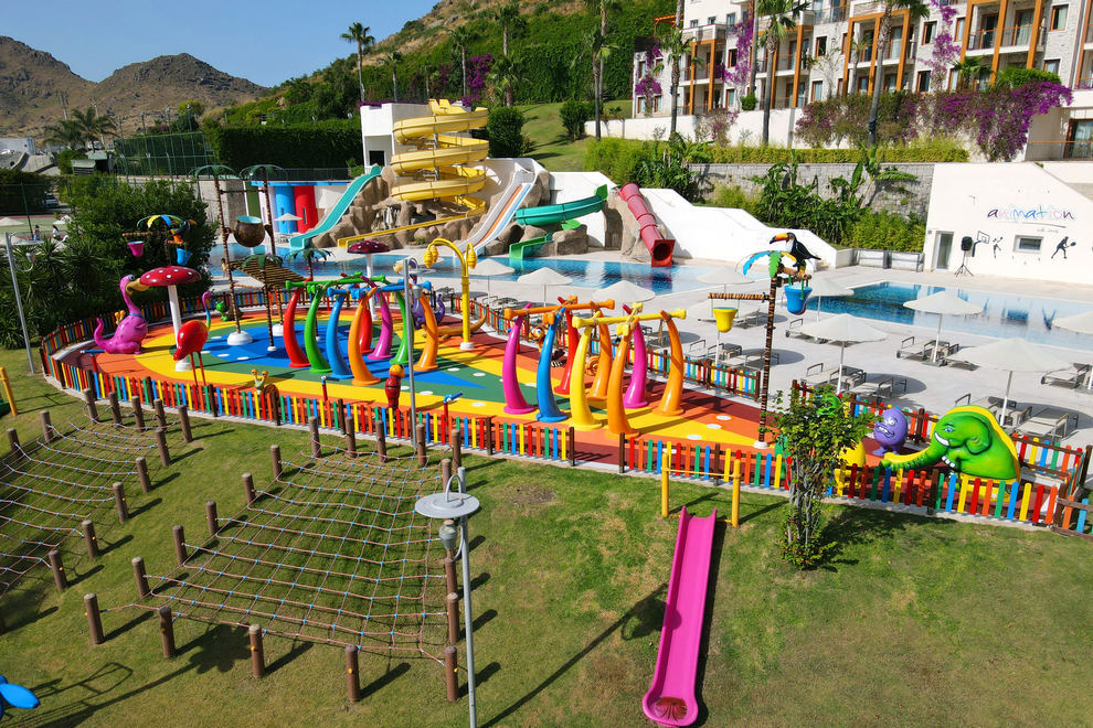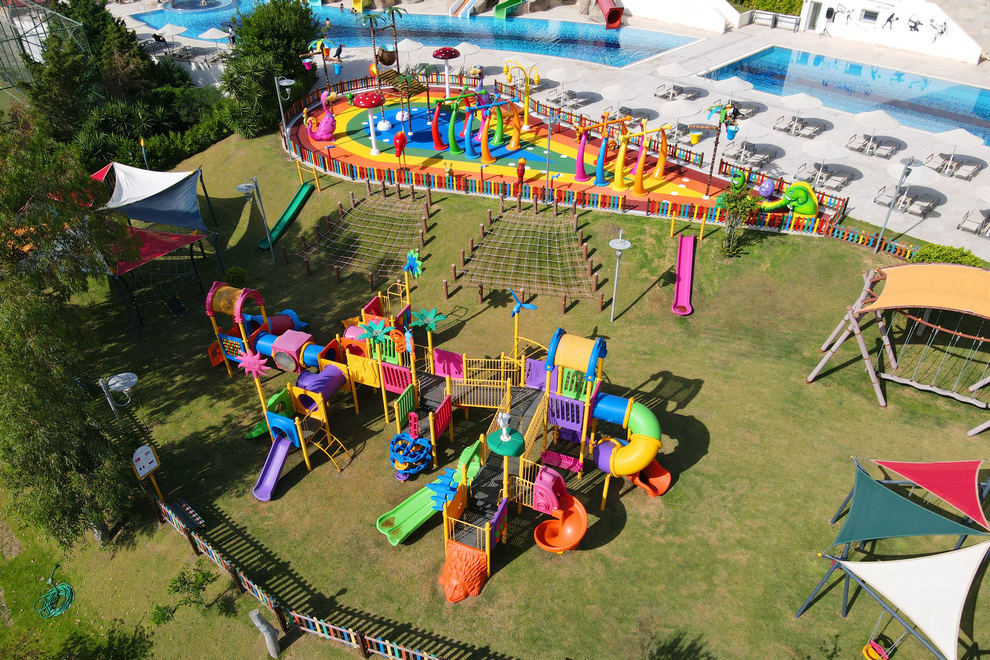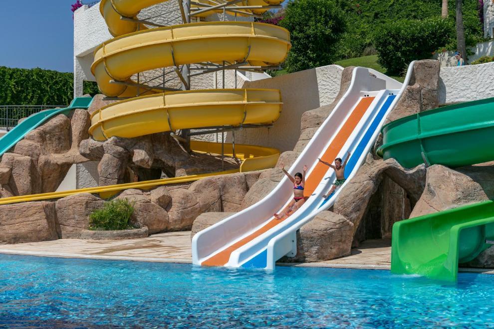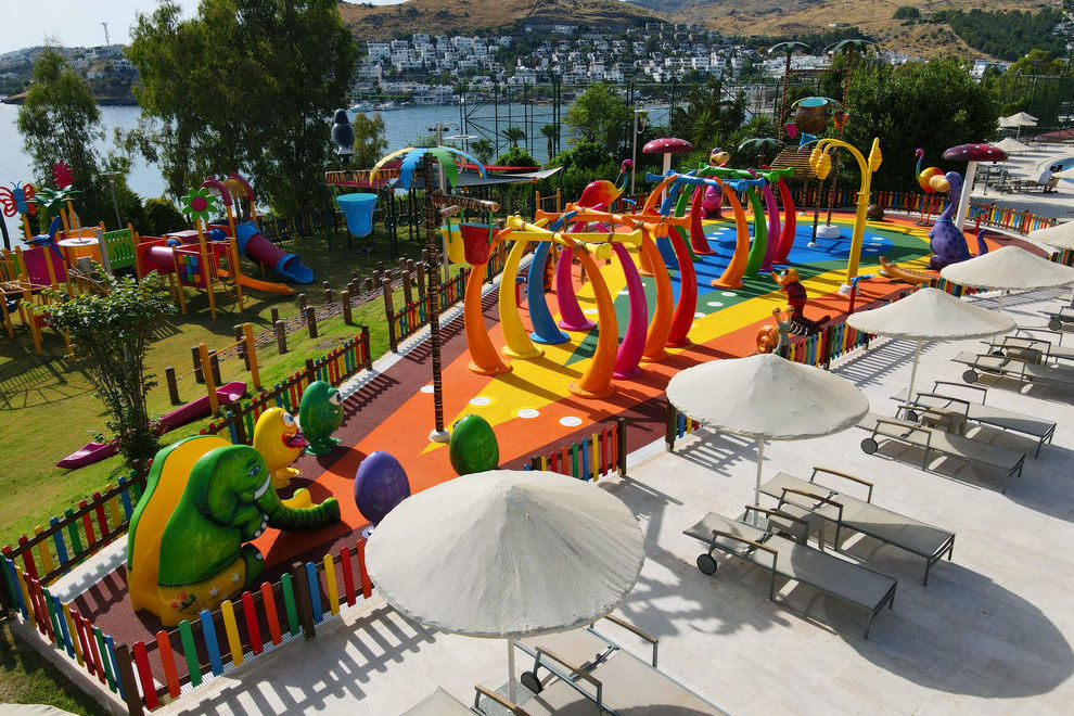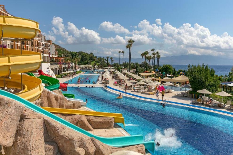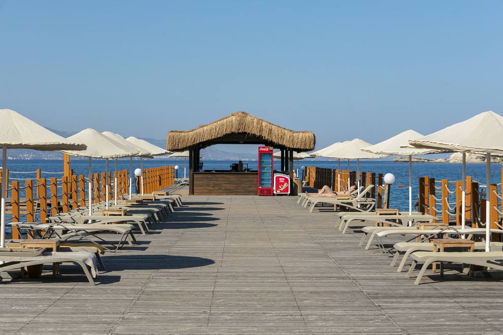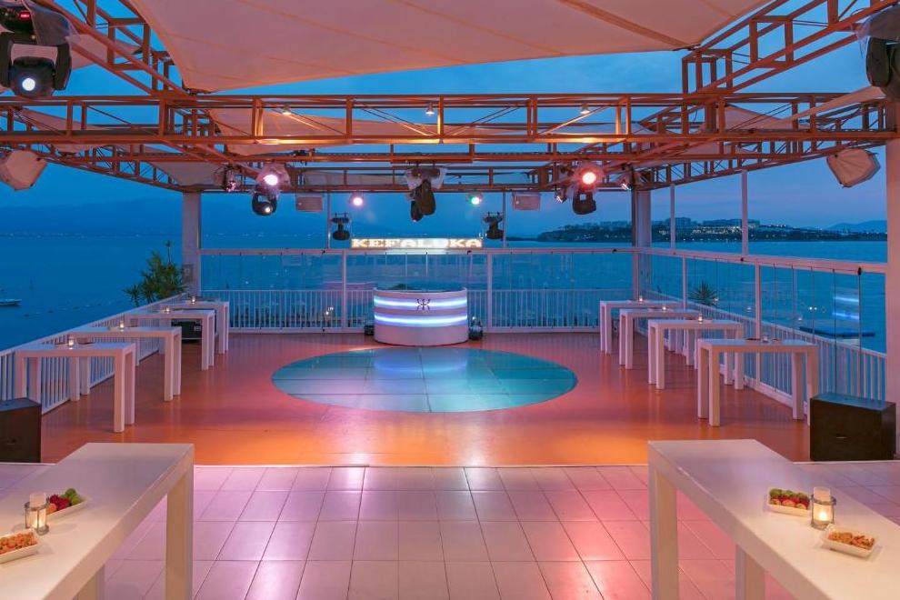 Kefaluka Resort се намира на собствен пясъчен плаж в залива Акярлар, има и кей. На разположение са три открити басейна за възрастни и три открити басейна за деца. Чадъри, шезлонги, матраци и хавлии на басейните и на плажа се предоставят безплатно.