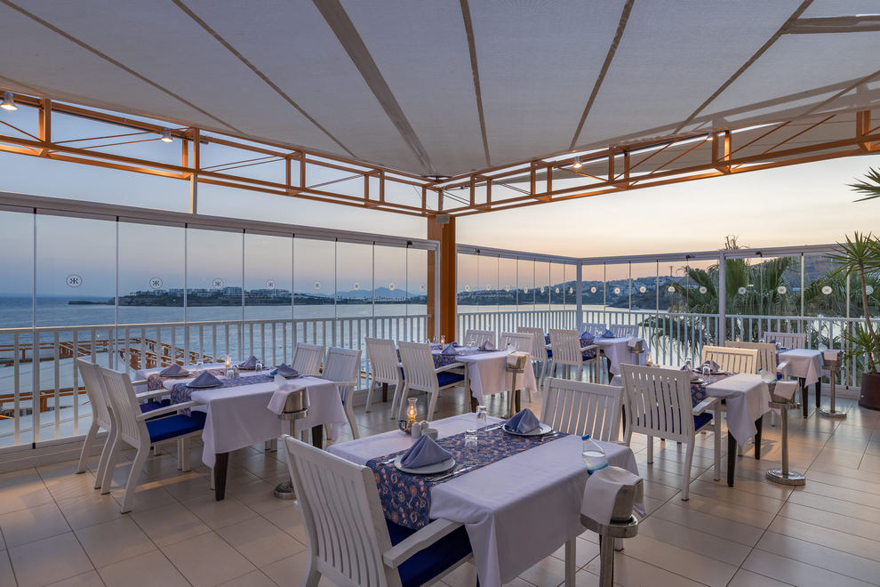 Kefaluka Resort разполага с 1 основен ресторант (реновиран през 2024г.), а'ла карт ресторанта (рибен, турски, мексикански и италиански). Разполага с 9 бара – витаминен бар, бар на басейна, бар на кея, наргиле бар, Moonlight club, Cine bar, нощен бар и сладкарница. Ultra All Inclusive концепцията включва закуска, обяд, вечеря и междинни хранения на шведска маса; местни и някои вносни алкохолни и безалкохолни напитки - без лимит.