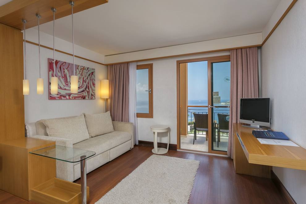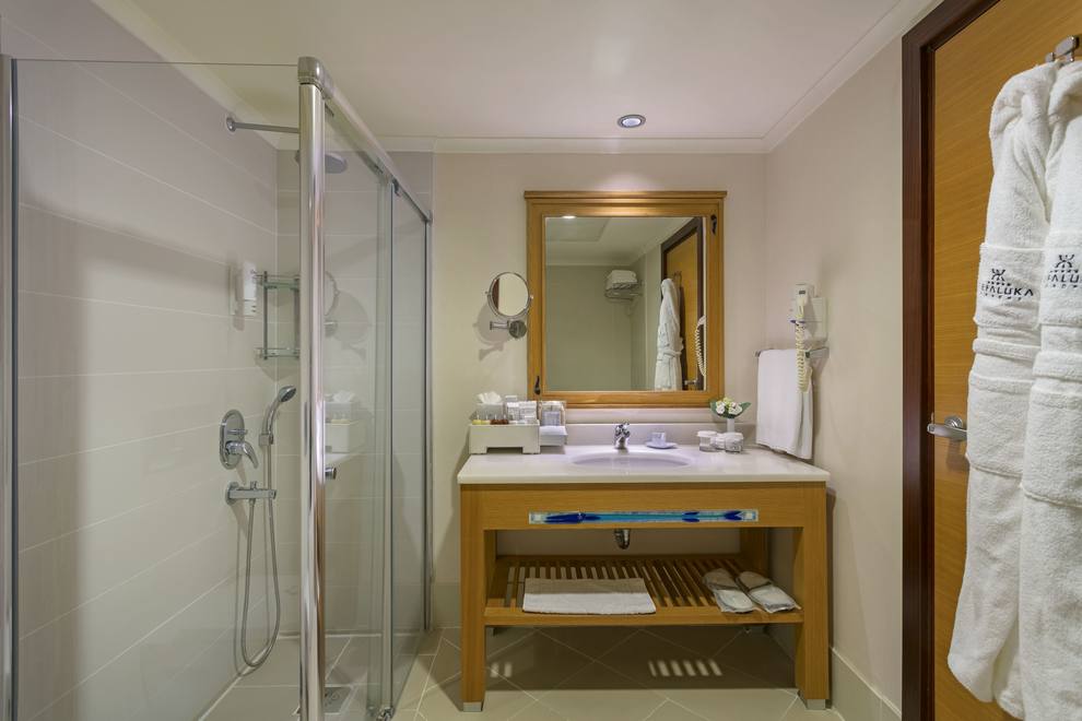 Kefaluka Resort разполага с 384 стаи за гости, разположени в един 10-етажен корпус и 14 двуетажни вили. Всички стаи са оборудвани с централен климатик, телевизор, минибар (безплатно - минерална вода, безалкохолни напитки, бира), сейф (безплатно), телефон, баня с вана, сешоар, балкон/тераса. Стаите се почистват всеки ден, а спалното бельо и кърпите се сменят три пъти седмично.