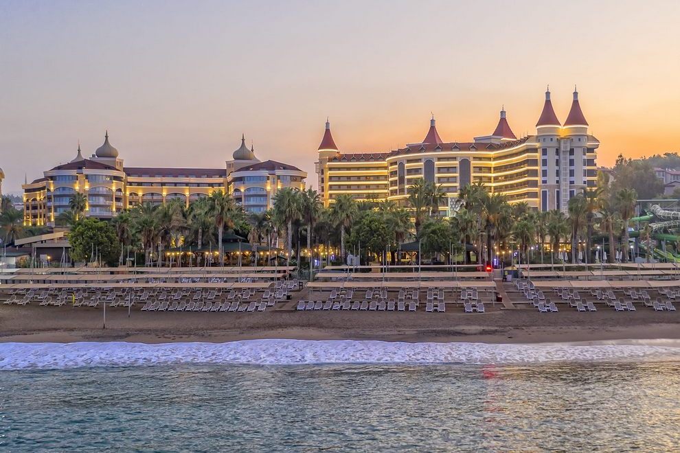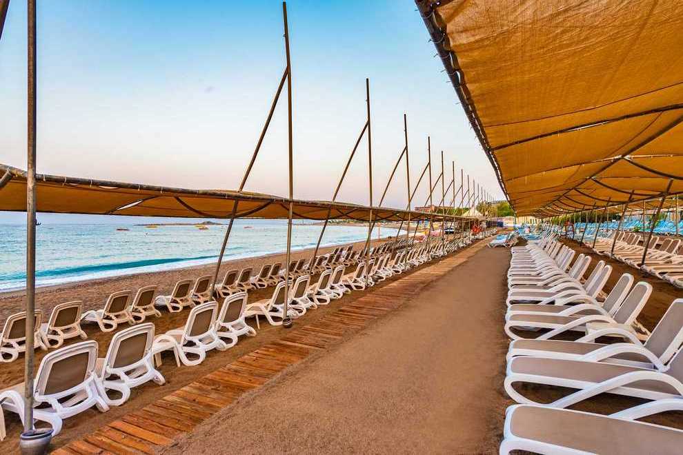Хотелът разполага със собствен пясъчен плаж. Безплатен бар на плажа. Има също открит басейн, закрит басейн, 3 водни пързалки. При басейна и на плажа чадъри, шезлонги, матраци, плажни кърпи се предоставят безплатно.