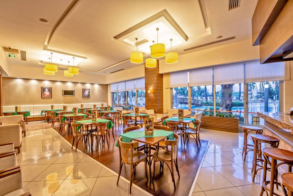 Основен ресторант, диетично меню, вегетарианско меню, 3 ресторанта а`ла карт (китайски, средиземноморски и турски – с предварително записване, за едноседмичен престой посещението на един ресторант един път е безплатно), 7 бара.