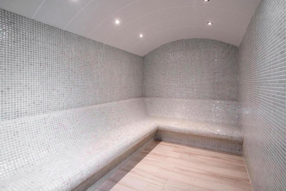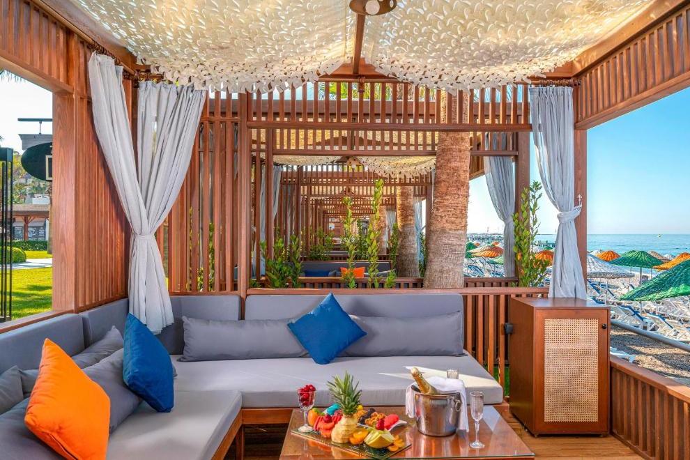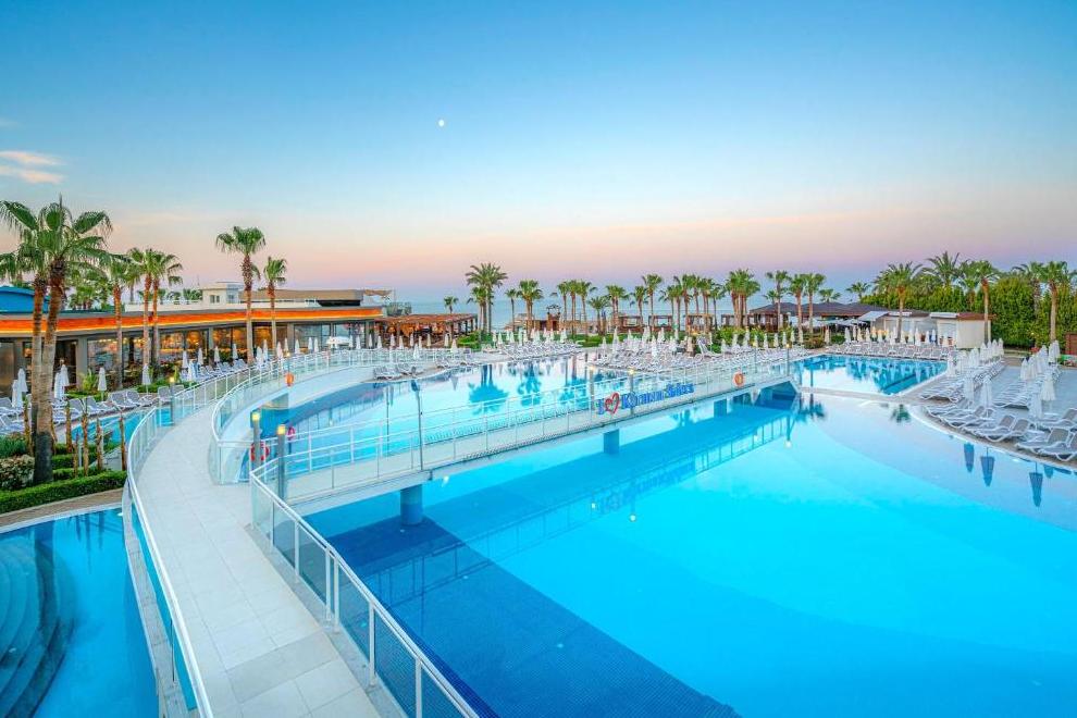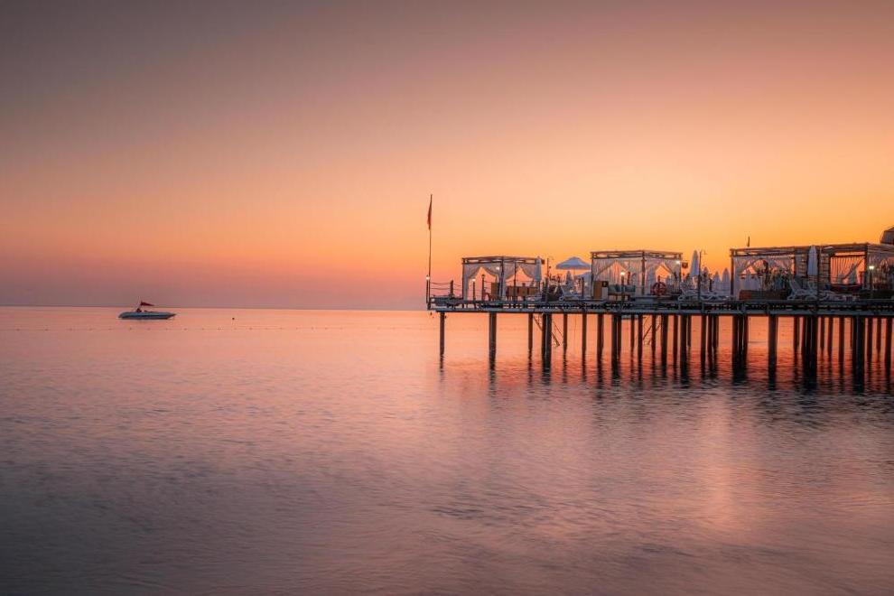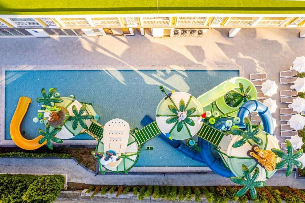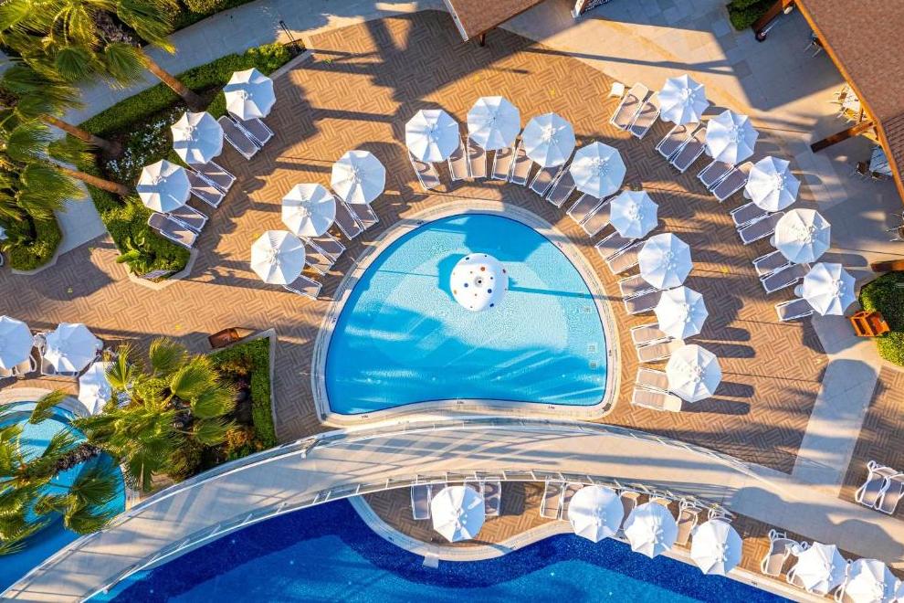 Собствен пясъчно-чакълест плаж, дълъг 200 м. Разполага с открит басейн, закрит басейн, 3 водни пързалки. Чадъри, матраци, шезлонги, плажни хавлии с ползват безплатно. Кабаните на плажа и кея - срещу заплащане.