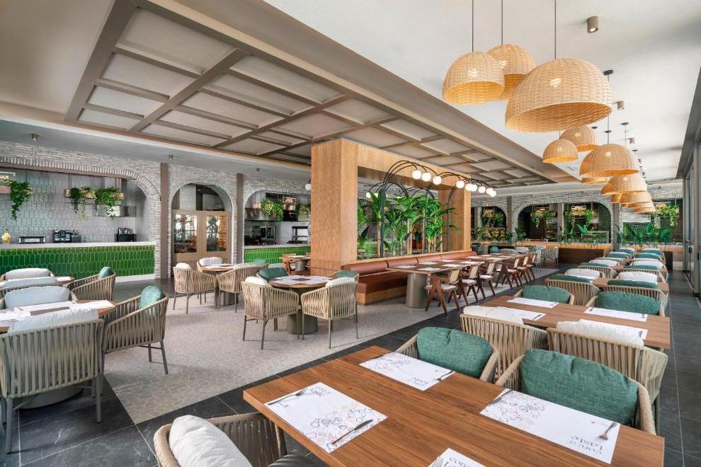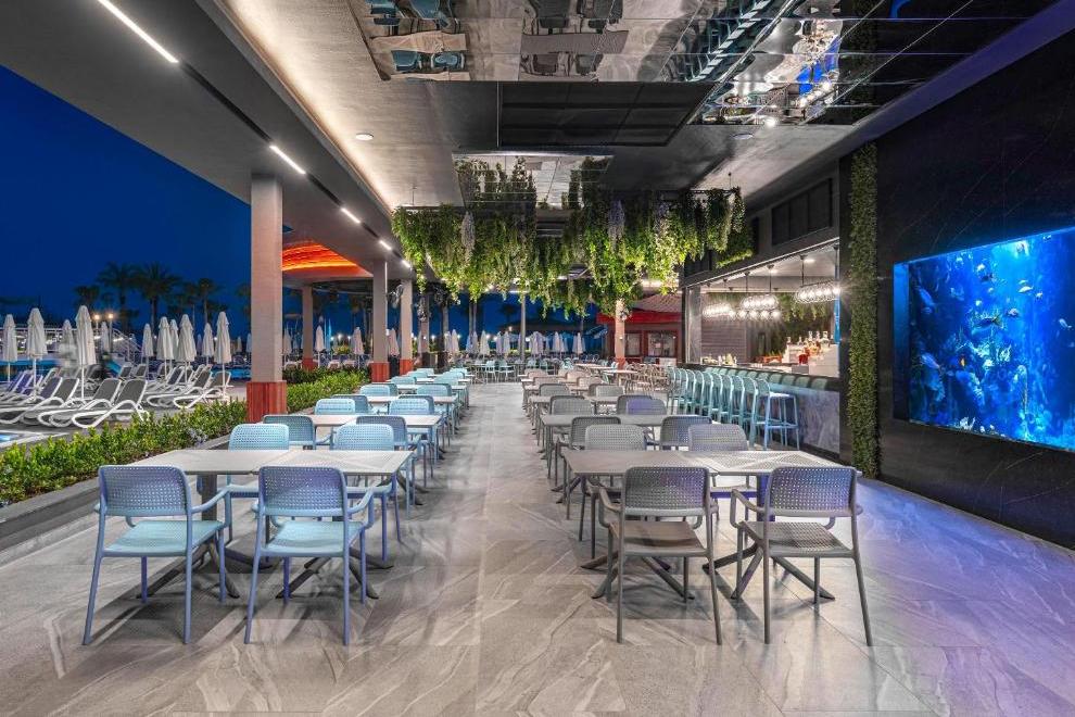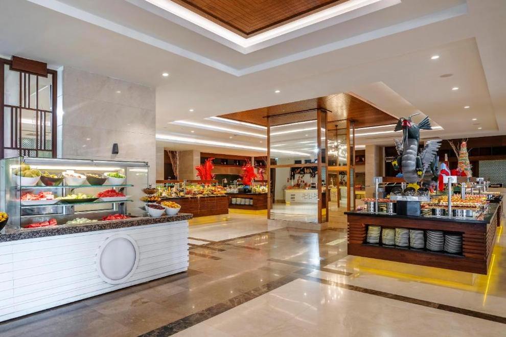 На разположение на гостите са основен ресторант (диетично и вегетарианско мню) и 5 a`лa карт ресторанта: Grill House, италиански, азиатски, средиземноморски (платен) и рибен (с предварителна резервация). Разнообразни напитки се предлагат в 5 бара (един работи днонощно), има и сладкарница.