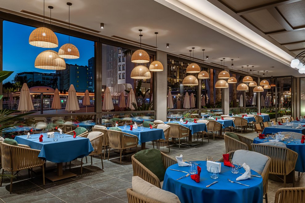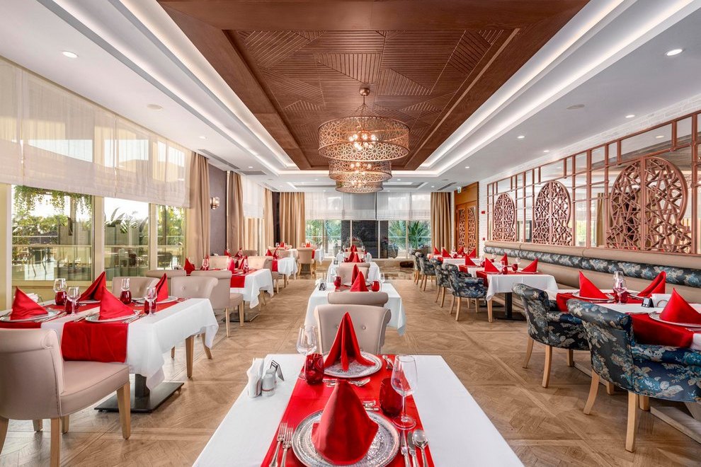 На разположение на гостите са основен ресторант (диетично и вегетарианско мню) и 5 a`лa карт ресторанта: Grill House, италиански, азиатски, средиземноморски (платен) и рибен (с предварителна резервация). Разнообразни напитки се предлагат в 5 бара (един работи днонощно), има и сладкарница.