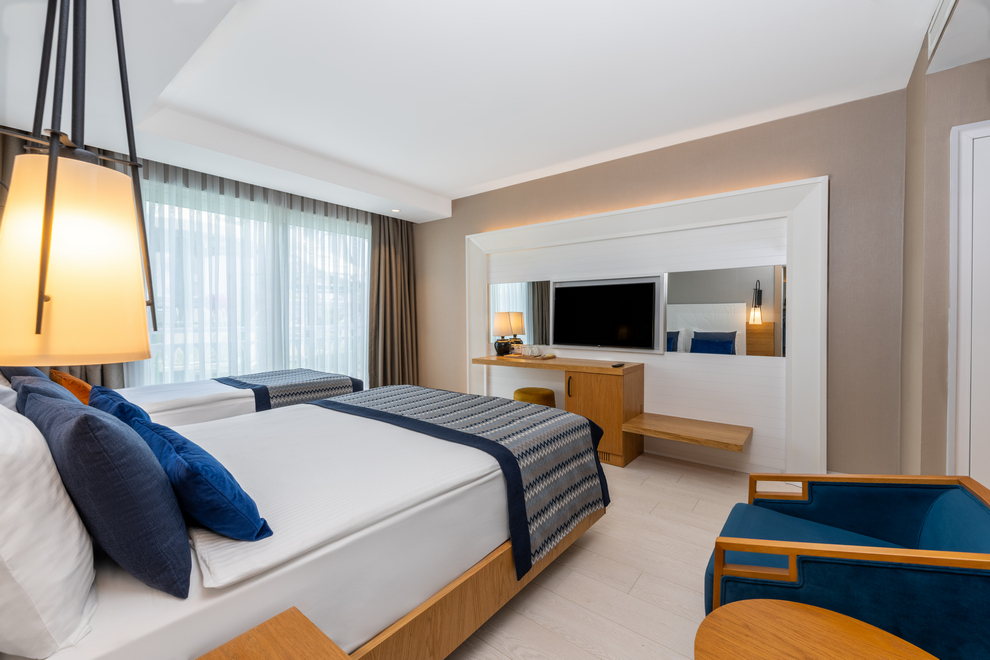 Всички стаи са оборудвани с телефон в стаята и банята, IPTV и LED телевизор, минибар (зарежда се ежедневно с бира, вода и безалкохолни напитки, шоколад и чипс), кана (комплект за чай и кафе), климатик, безплатен сейф, бебешко креватче, баня с душ, сешоар, халат за баня, тоалетни принадлежности, меню за възглавници, балкон, Wi-Fi.