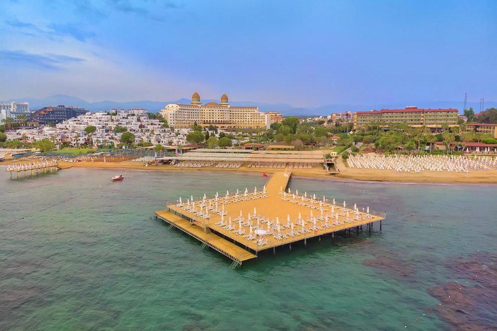 Хотелът разполага със собствен, пясъчно-чакълест плаж, дълъг 200 м и кей. На разположение на гостите са открит басейн с прясна вода, без отопление, 1360 кв.м, дълбочина 1,40 м. Полуолимпийски басейн (отопляем в зависимост от метеорологичните условия), 280 кв.м, дълбочина 1,40 м, закрит и открит басейн. Закрит басейн с прясна вода (отопляем в зависимост от метеорологичните условия), 190 кв.м. 3 водни пързалки без отопление, работно време: 11:00-13:00 ч. / 15:00-17:00 ч. Детски басейн с мини аквапарк, отопляем в зависимост от метеорологичните условия. Пързалките работят в зависимост от метеорологичните условия. На плажа и при басейна чадърите, шезлонгите и плажните кърпи се предоставят безплатно.
