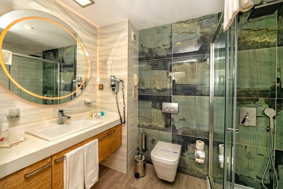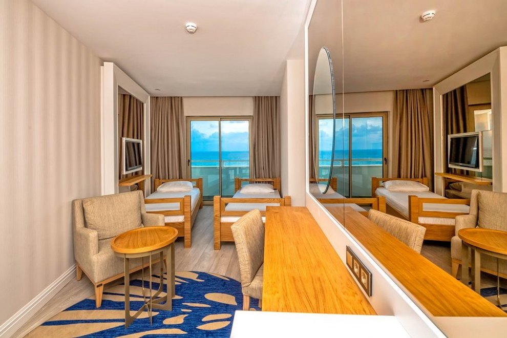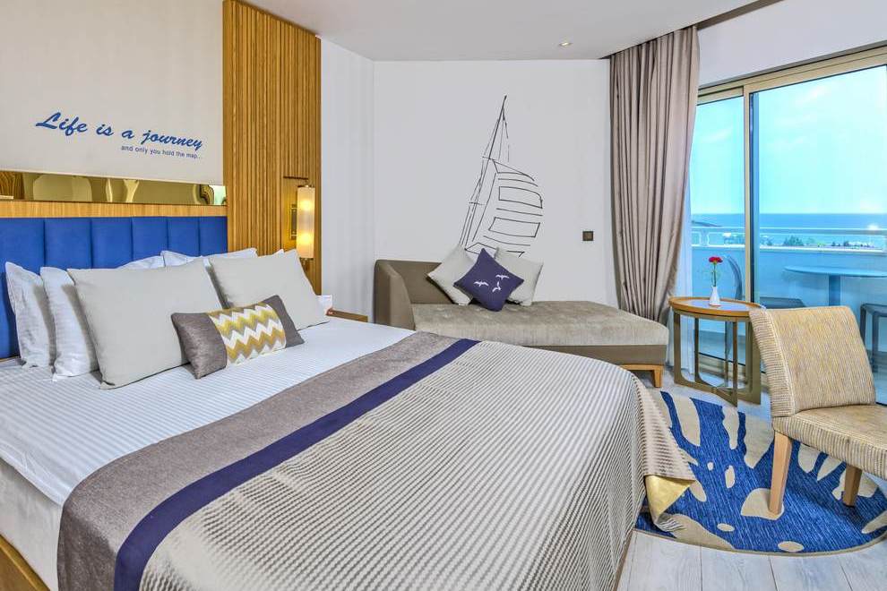 Хотелът се състои от една 9-тажна сграда, в която са разпределени 436 климатизирани стаи: 135 Standard Room Land View (28 кв.м), 100 Standard Room Sea View (28 кв.м), 51 Family Room Land View (38 кв.м), 6 Jacuzzi Terrace (28 кв.м), 16 Family Room Jacuzzi Terrace ((38 кв.м) и Family Room Sea View (38 кв.м). Стаите са оборудвани с телевизор, телефон, минибар, кана за чай и кафе, сейф, баня с душ, сешоар, безплатни тоалетни принадлежности, халат, чехли, Wi-Fi, балкон.