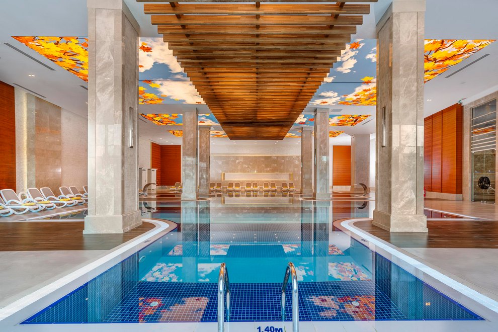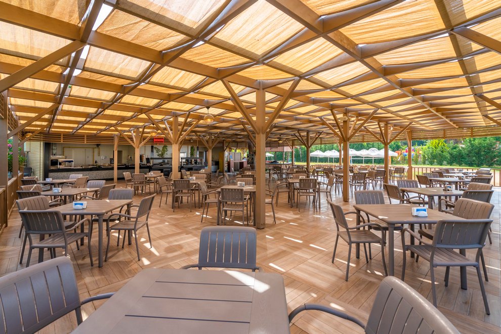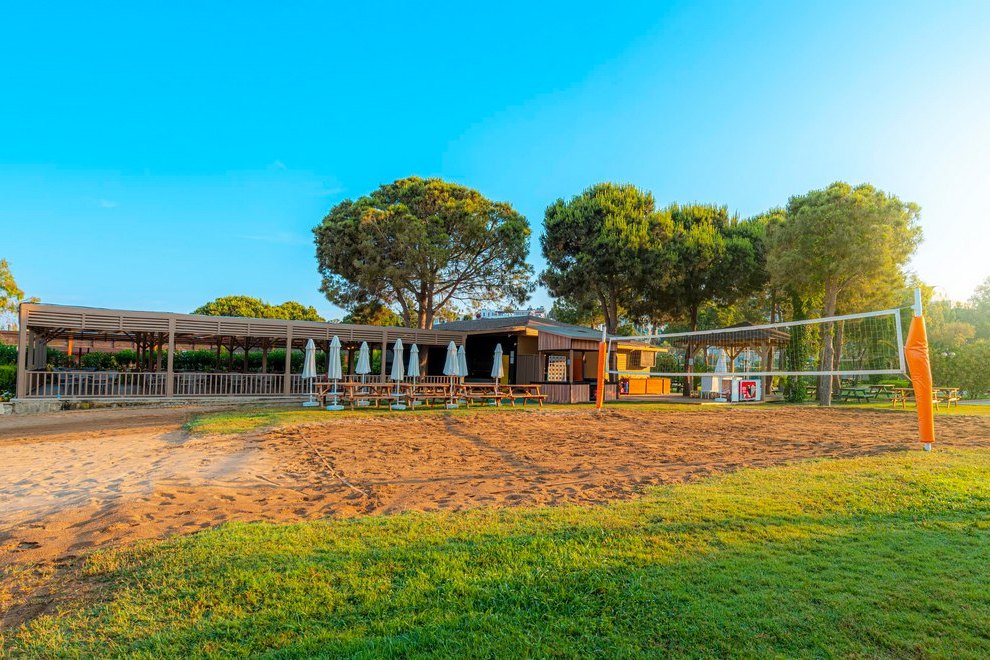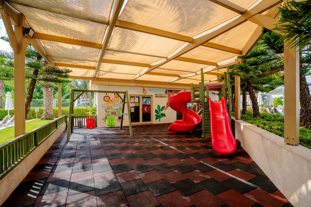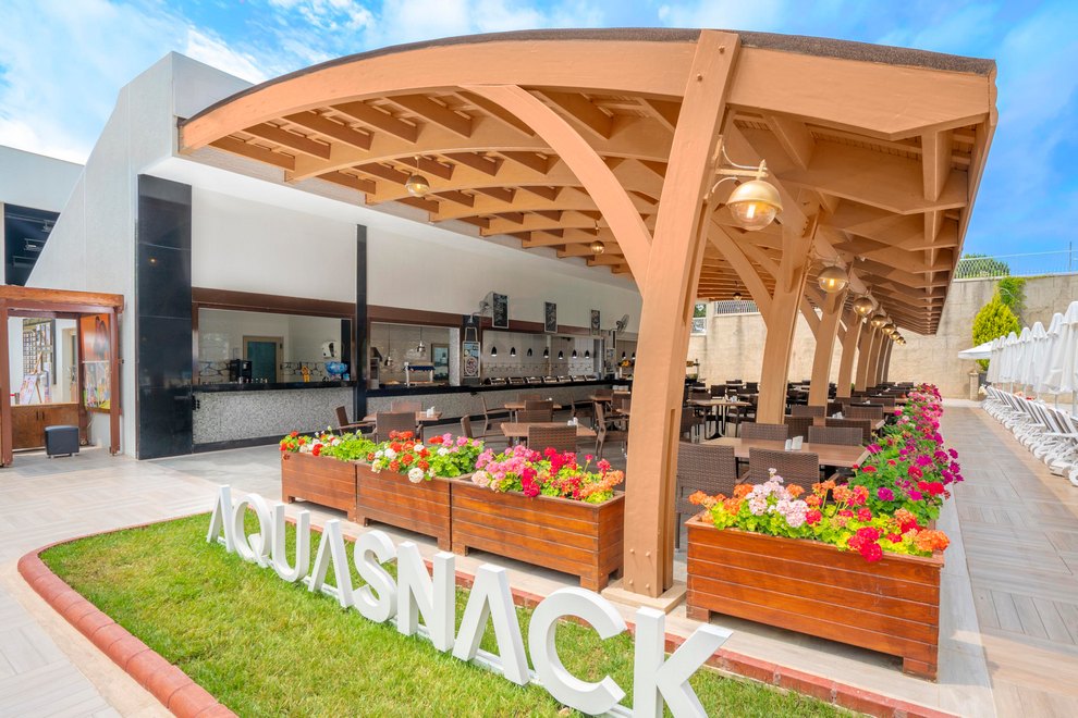 Хотелът разполага със собствен, пясъчно-чакълест плаж, дълъг 200 м и кей. На разположение на гостите са открит басейн с прясна вода, без отопление, 1360 кв.м, дълбочина 1,40 м. Полуолимпийски басейн (отопляем в зависимост от метеорологичните условия), 280 кв.м, дълбочина 1,40 м, закрит и открит басейн. Закрит басейн с прясна вода (отопляем в зависимост от метеорологичните условия), 190 кв.м. 3 водни пързалки без отопление, работно време: 11:00-13:00 ч. / 15:00-17:00 ч. Детски басейн с мини аквапарк, отопляем в зависимост от метеорологичните условия. Пързалките работят в зависимост от метеорологичните условия. На плажа и при басейна чадърите, шезлонгите и плажните кърпи се предоставят безплатно.