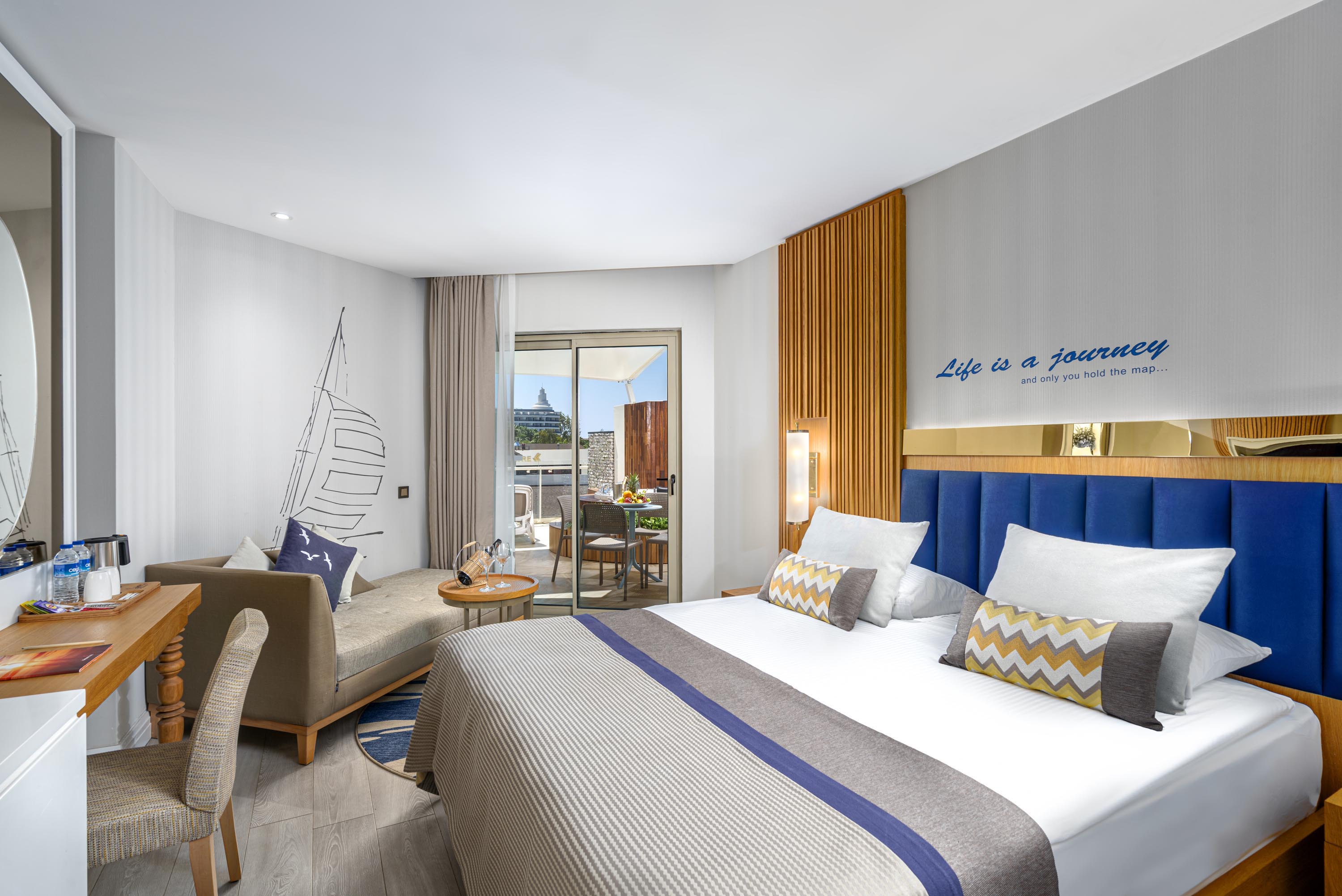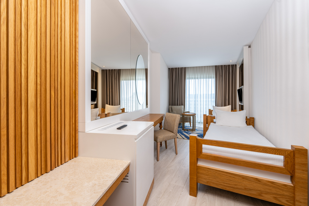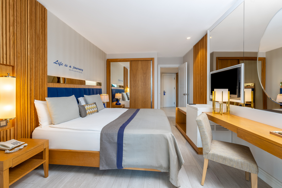 Хотелът се състои от една 9-тажна сграда, в която са разпределени 436 климатизирани стаи: 135 Standard Room Land View (28 кв.м), 100 Standard Room Sea View (28 кв.м), 51 Family Room Land View (38 кв.м), 6 Jacuzzi Terrace (28 кв.м), 16 Family Room Jacuzzi Terrace ((38 кв.м) и Family Room Sea View (38 кв.м). Стаите са оборудвани с телевизор, телефон, минибар, кана за чай и кафе, сейф, баня с душ, сешоар, безплатни тоалетни принадлежности, халат, чехли, Wi-Fi, балкон.