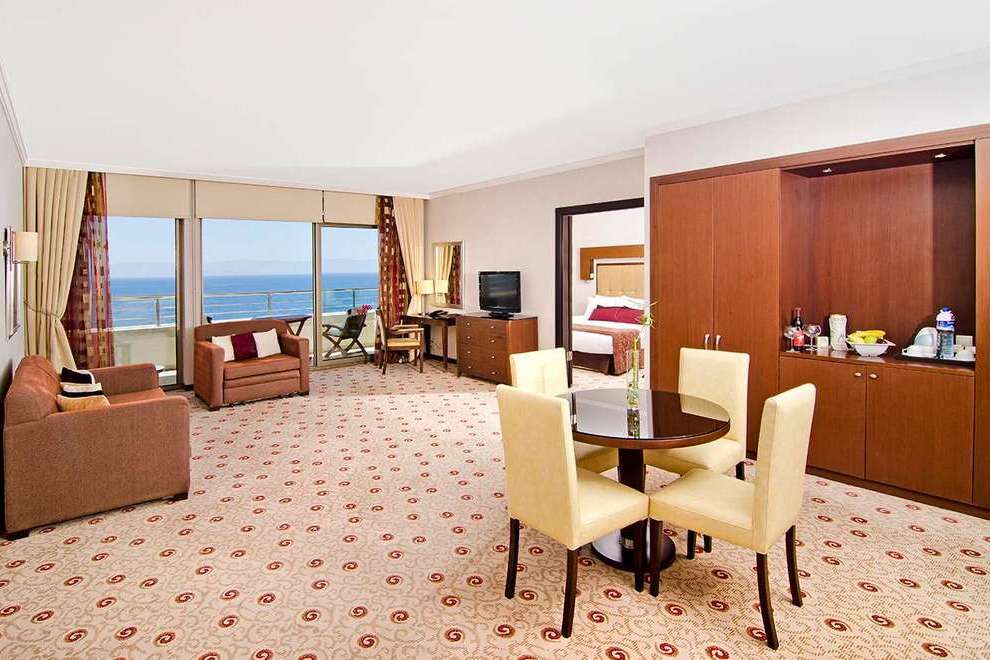 Хотелът се състои от една 9-етажна сграда, в която са разпределени 272 климатизирани стаи: 240 Standard Roomс площ от 20-27 кв.м (включително баня, без балкон). Макс. 3 възрастни + 1 бебе или 2 възрастни + 1 дете + 1 бебе. Състои се от 1 спалня, единично легло от 180 х 200 см или две отделни легла от 90 х 190 см, диван, баня с душ, балкон, паркет, централна климатизация, телефон, 40" LED екран телевизор със сателитна система за излъчване, Wi-Fi, цифров сейф. Предлагат се минибар, сешоар, прибори за чай и кафе (през летния сезон) и бебешко легло (при поискване). Има опции за стая с изглед към морето и Кушадасъ и към сушата (страничен изглед към морето от балкон) и четири свързани стаи. 18 Executive Room от 35 кв.м (включително банята, с изключение на балкона). Макс. 4 възрастни. Състои се от 1 спалня с единично легло от 190 х 200 см или две отделни легла от 100 х 200 см, диван, баня с вана, балкон, паркет, разделен климатик, телефон, 40" телевизор с LED екран със сателитна система за излъчване, Wi-Fi, цифров сейф. , минибар, ВИП настройка, сешоар, настройка за чай и кафе, вечерно обзавеждане и бебешко легло (при поискване). Има опции за стая с изглед към морето и Кушадасъ и суша (страничен изглед към морето от балкон) и две свързани стаи. Гостите, отседнали с полупансион и ол инклузив в тези стаи, ще могат да вечерят от менюто A`la Carte в ресторант SEDİR A`la Carte, без да плащат никаква разлика, ако желаят. Diplomatic Suite разполага с големи легла 190 х 200 см, LCD телевизор с 51 екрана (20 инча),вана и душ, сплит климатик, минибар. Могат да бъдат настанени до 4 души - хол и спалня 58 кв.м, работна маса и маса за хранене. Гостите, отседнали с полупансион и ол инклузив в тези стаи, ще могат да вечерят от менюто A`la Carte в ресторант SEDİR A`la Carte, без да плащат никаква разлика, ако желаят. Хотелът има и една King Suite с площ от 100 кв.м (включително банята, с изключение на балкона). Макс. 6 възрастни + 2 бебета. 2 спални + 1 хол (3 стаи със свързваща врата); едно легло от 200 х 200 см в една спалня и две единични легла от 100 х 200 см във втората спалня, хол, трапезария и работна маса в хола, баня с вана и баня с душ, самостоятелна джакузи вана в една спалня, балкон, шезлонг на балкона, паркет, разделен климатик, телефон, 40" телевизор с LED екран с три сателитни системи за излъчване, Wi-Fi, цифров сейф, минибар, VIP настройка, сешоар, пособия за чай и кафе и бебешко легло (при поискване). Изглед към морето и Кушадасъ. Гостите, отседнали с полупансион и ол инклузив в тези стаи, ще могат да вечерят от менюто A`la Carte в ресторант SEDİR A`la Carte, без да плащат никаква разлика, ако желаят. Стаите се почистват всеки ден, спалното бельо се сменя три пъти седмично.