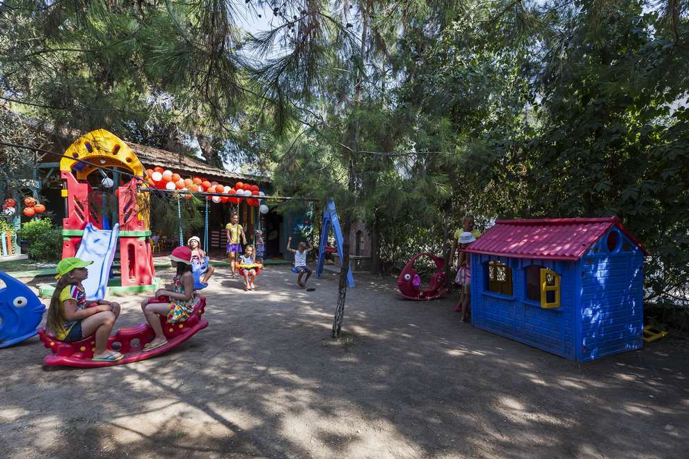 Собствен чакълест плаж, дълъг 150 м. На разположение на гостите има два открити басейна с две водни пързалки. Кърпи, шезлонги, матраци и чадъри на плажа и при басейна се ползват безплатно.