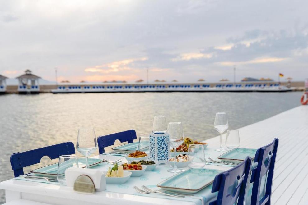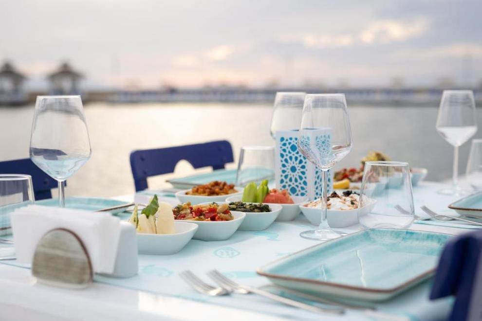 На разположение на гостите са основен ресторант, 4 a`ла карт ресторанта: турски, рибен, азиатски и италиански (с предварителна резервация). Освежаващи напитки се поднасят в 5 бара (лоби, при басейна, клуб, на плажа, диско),има и сладкарница. Ultra All Inclusive концепцията включва закуска, обяд, вечеря и междинни хранения на шведска маса, алкохолни и безалкохолни напитки местно производство (и някои вносни) без лимит.