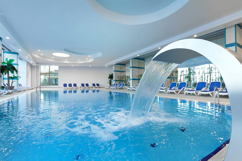 Хотелът има собствен пясъчен плаж, два външни плувни басейна, релакс басейн, вътрешен басейн, аквапарк. Чадъри, шезлонги, матраци и плажни кърпи се ползват безплатно.