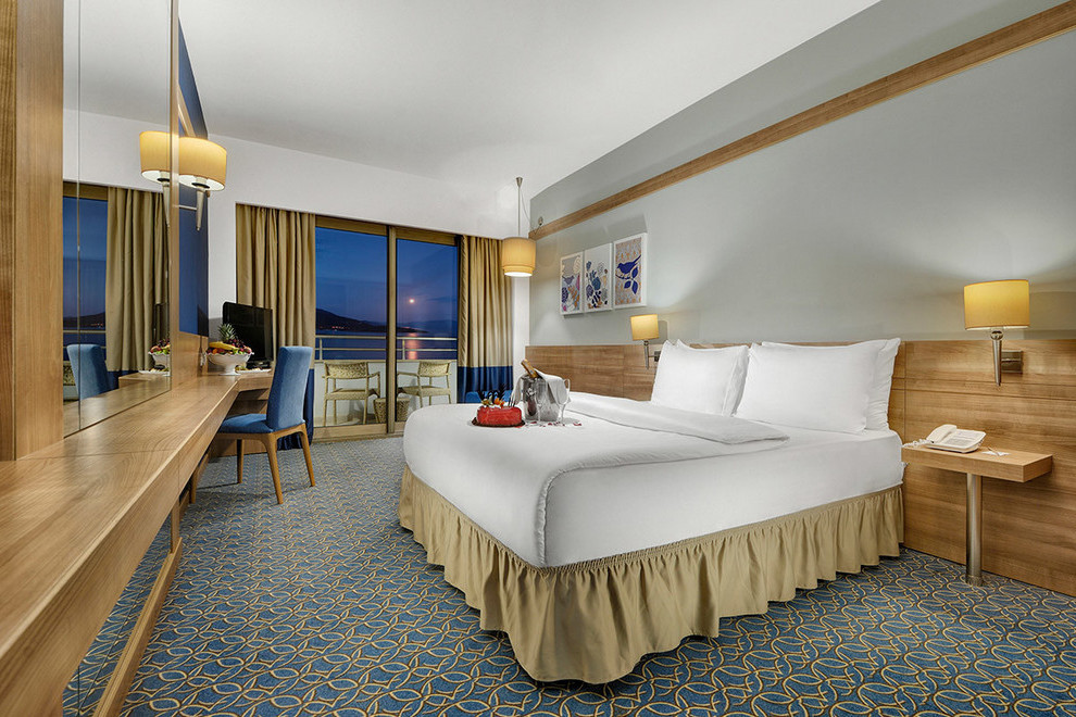 хотелът се състои от една сграда, в която са разположени 508 стаи. Те са с изглед към суша, море, градина и басейн и са декорирани със специални комфортни и удобни мебели в пастелни тонове. Хотелът разполага с 516 стаи, от които 262 standart room, 131 superior room, 119 family room и 4 suit room. Всички са оборудвани с климатик, LCD телевизор, телефон, мини бар (безплатен), сет за кафе и чай, сейф (безплатен), баня с душ, сешоар, балкон. Почистване на стаите - всеки ден, смяна на спалното бельо и кърпите - 3 пъти в седмицата.