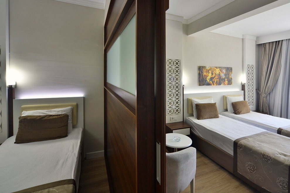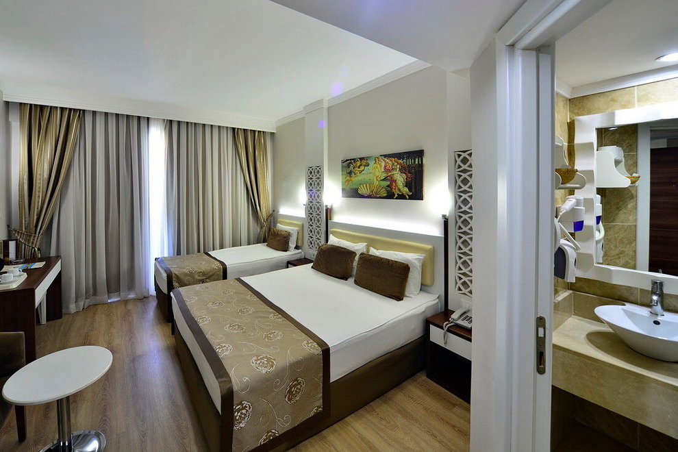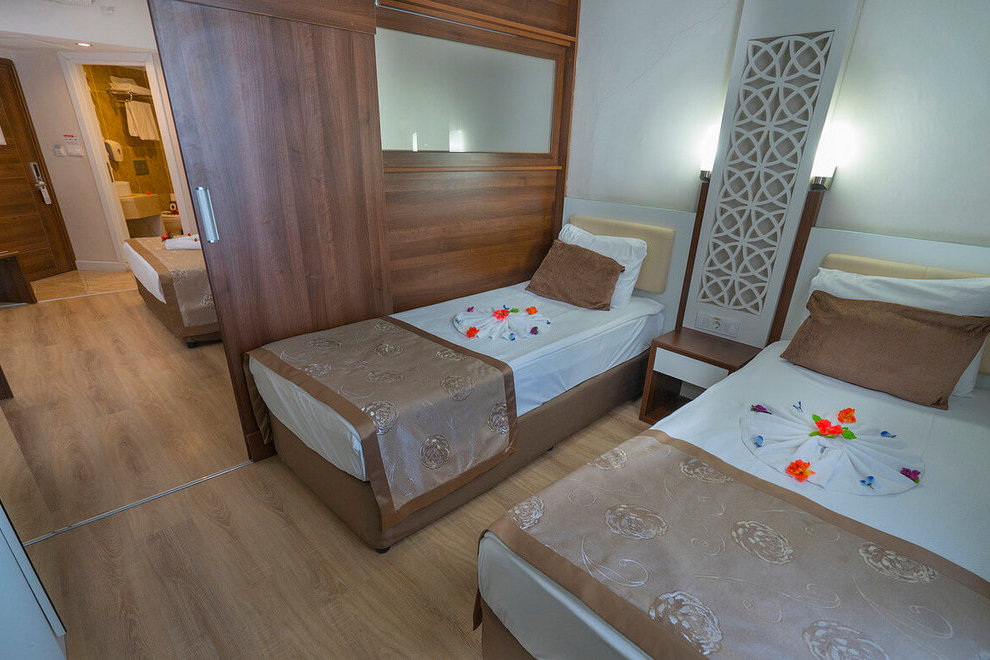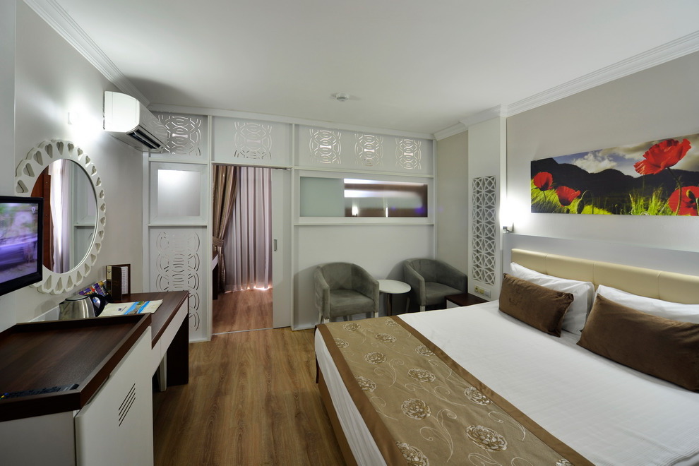 Хотелът се състои от една 6-етажна сграда (два асансьора), в която са разпределени 239 климатизирани стаи, от които 188 Standard Room (20 кв.м), 24 Family Room With Bunkbed (28 кв.м) и 24 Family Room Two Bedrooms (30 кв.м). Те са оборудвани с телефон, телевизор, минибар, сейф, баня с душ, сешоар, безплатни тоалетни принадлежности, Wi-Fi, балкон. Стаите се почистват ежедневно, спалното бельо се сменя веднъж на три дни.