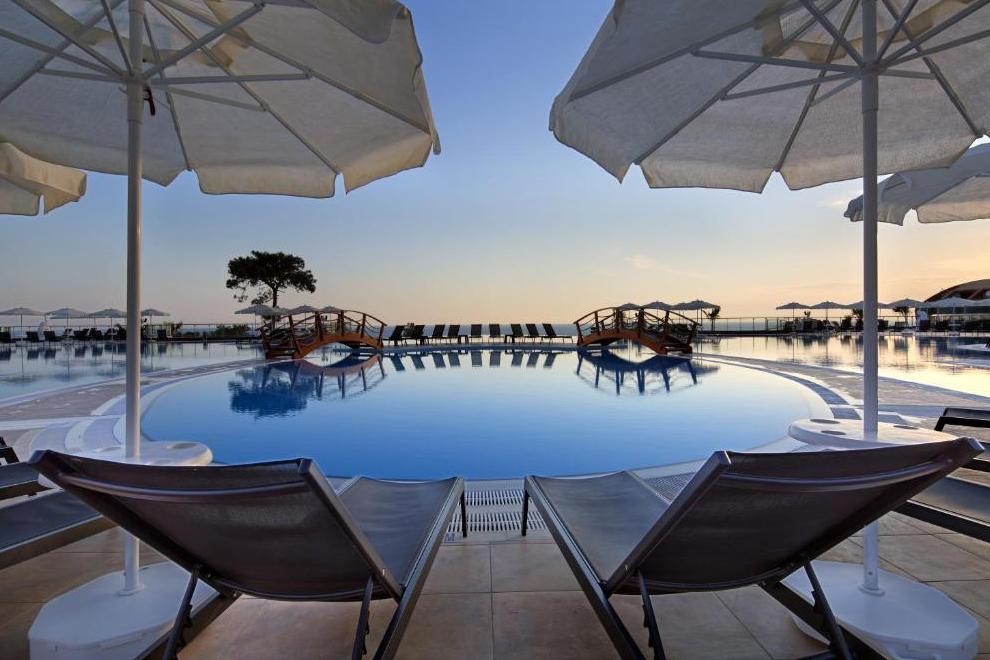 Хотелът разполага със собствен плаж, открит, закрит и инфинити басейни. Чадъри и шезлонги на плажа и басейна се предоставят безплатно. Има и тераса за слънчеви бани.