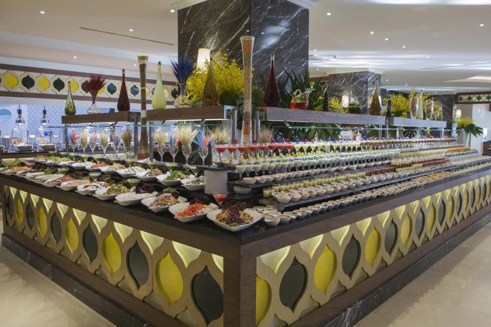 Хотелът разполага с основен ресторант, 4 а`ла карт ресторантa (местен, суши, рибен, италиански), сладкарница, 6 бара. Ultra All Inclusive - закуска, обяд и вечеря на шведска маса, допълнителни хранения, местни напитки без лимит.
