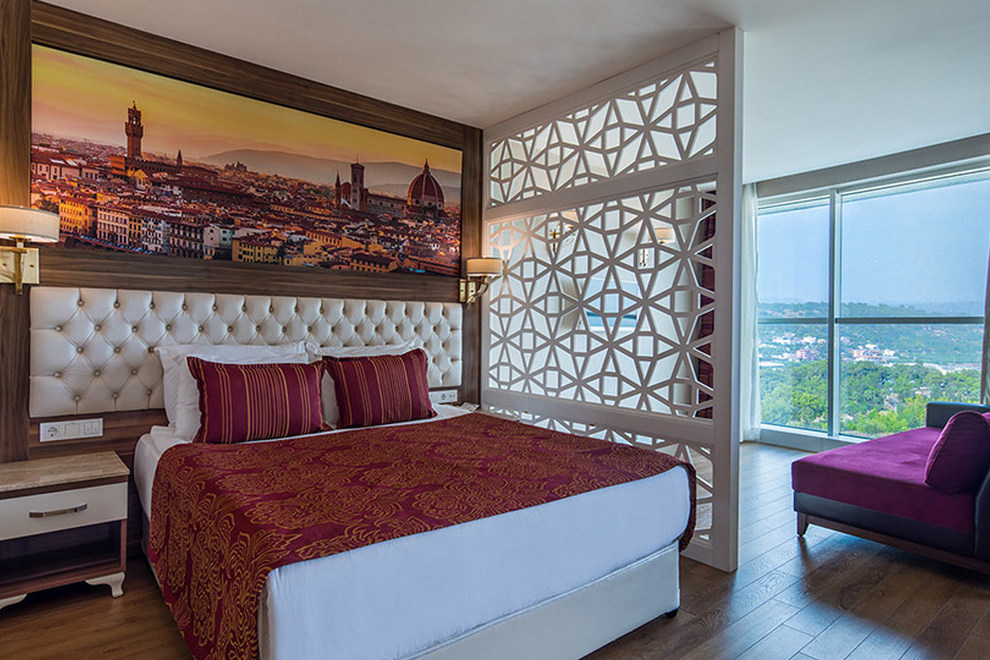 Хотелът посреща гостите в 259 климатизирани стаи. Всяка стая е оборудвана с климатик, сателитна телевизия, телефон, баня с душ, сешоар, безплатни тоалетни принадлежности, минибар, сет за кафе/чай, сейф, балкон. Предоставя и безплатна Wi-Fi връзка.