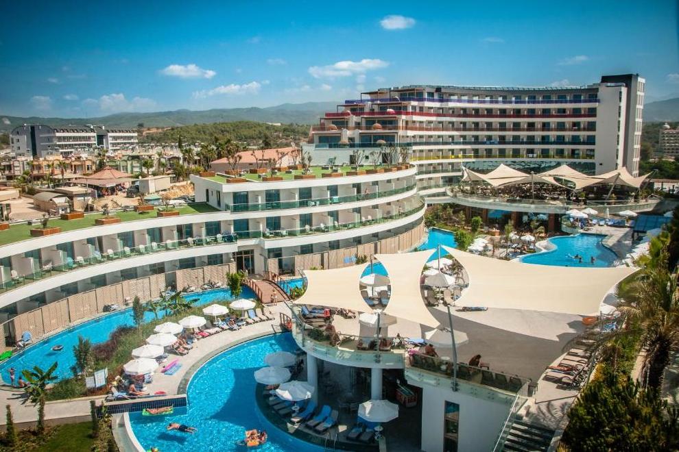 Long Beach Harmony се намира на брега на морето. Алания е на 18 километра от хотела, а Сиде е на 41 километра. Най-близкото летище "Газипаша" е на 56 километра. Хотелът е построен през 2014 г., на обща площ от 18 000 кв.м.