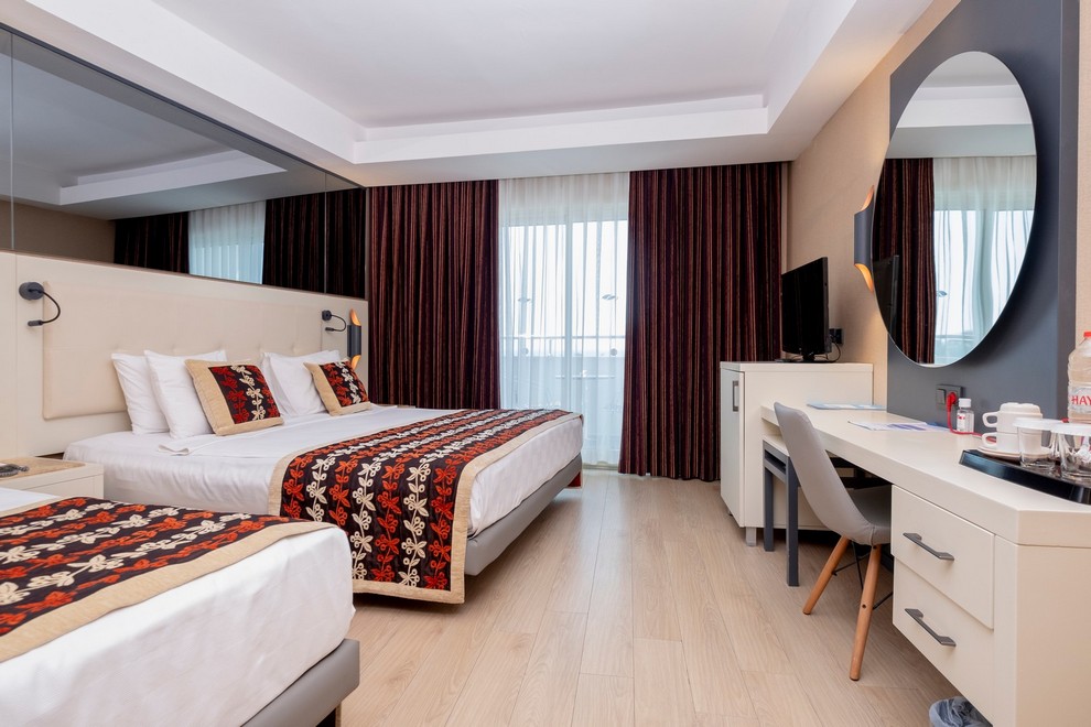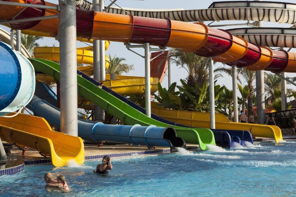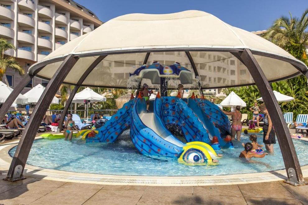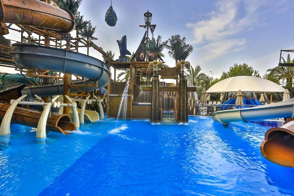 Хотелът разполага със собствен пясъчен плаж с кей. Има 6 открити и 1 закрит басейн, 8 водни пързалки. Чадъри, шезлонги и матраци на плажа и при басейна – безплатно. Плажни кърпи - срещу карта, която се издава при настаняване.