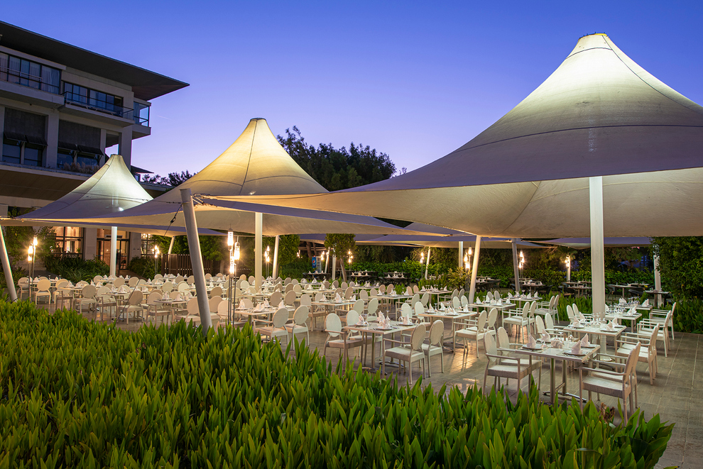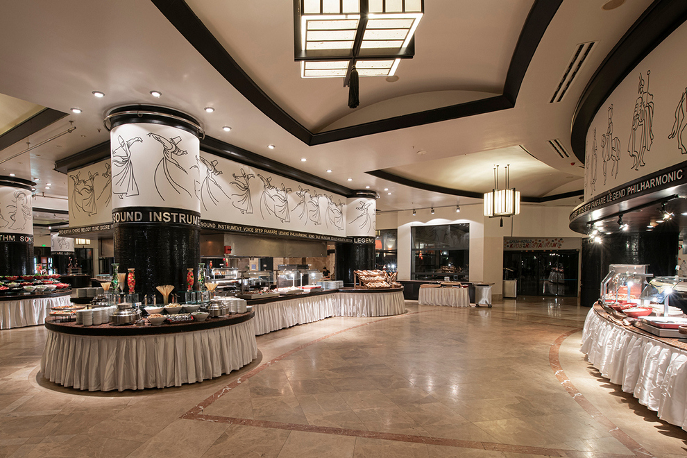 На разположение на гостите има основен ресторант и 5 а`ла карт ресторанта: турски, мексикански, италиански, рибен, сингапурски 7+ год. Освежаващи напитки и закуски се поднасят в лоби бар, бар на плажа, Istanblu Bar, линкс бар.