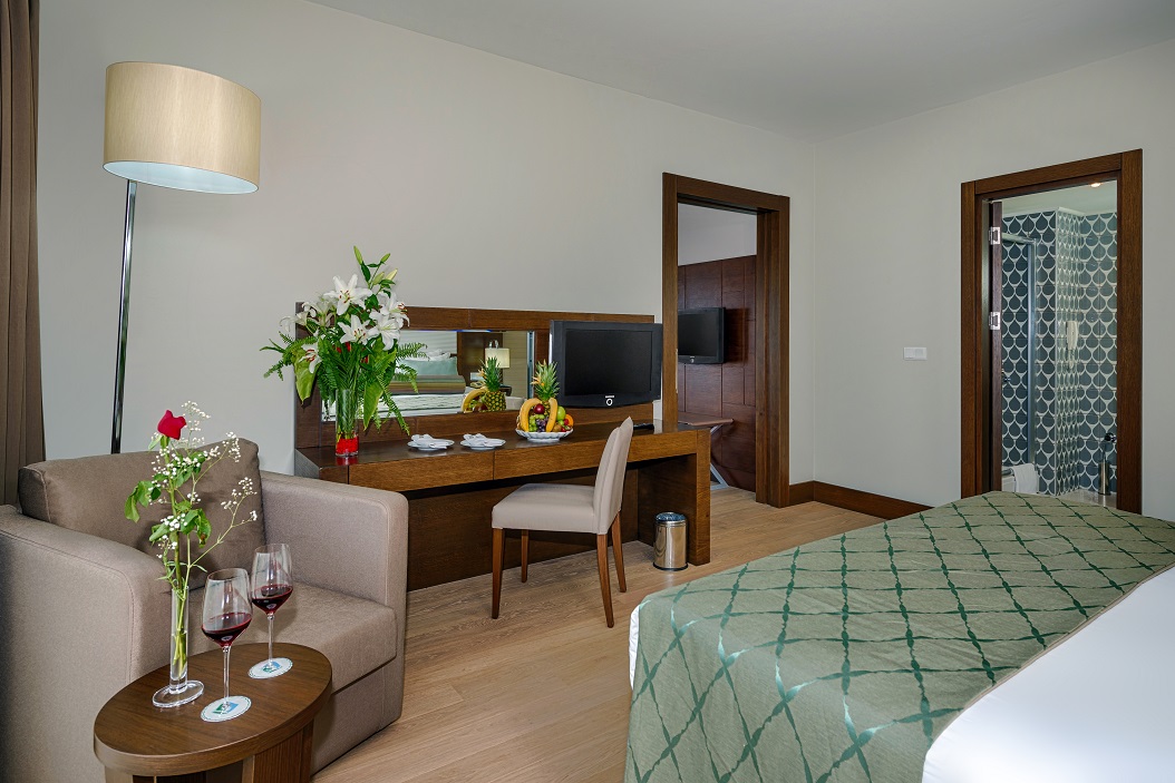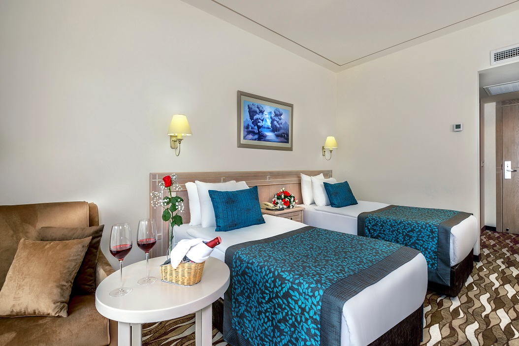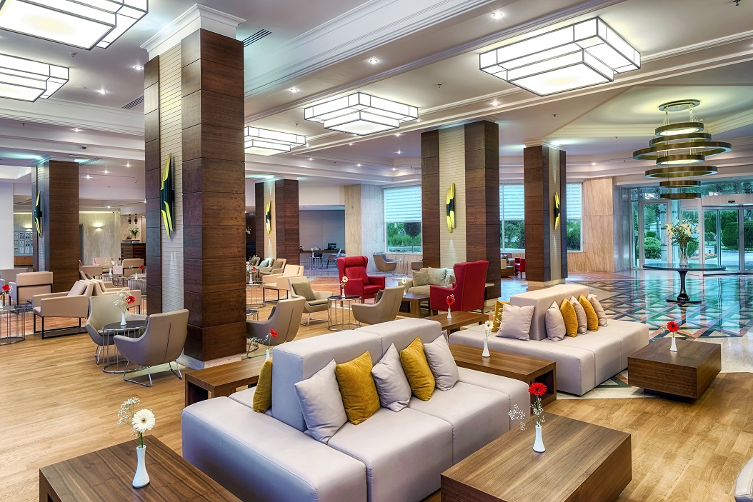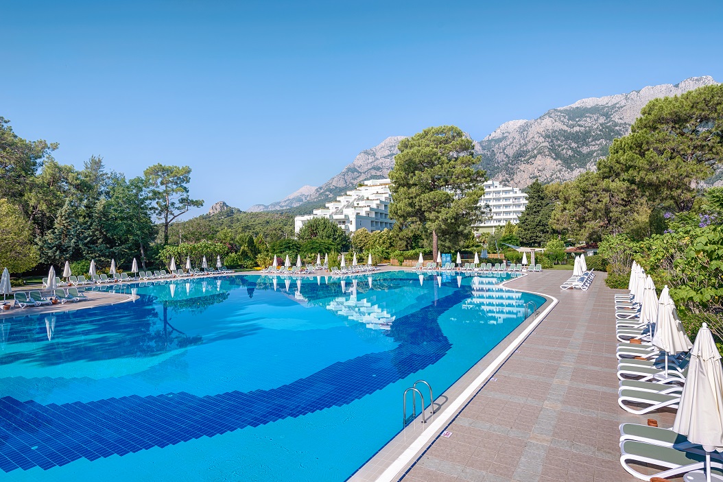 Описание Разположение: Хотелът се намира на 46км. от летище Анталия, на брега на морето. Построен през 2000г. с обща площ от 42000м2., реновиран през 2014 г. В стаите: Хотелът разполага с общо 348 стаи. Всички стаи са оборудвани с : климатик, кабелна телевизия, телефон, баня с вана, сешоар, минибар, сейф. Почистване на стаята - всеки ден, смяна на спално бельо - 2 пъти седмично. На територията на хотела: Основен ресторант, а-ла карт ресторант(с предварителна резервация), 4 бара, 5 басейна, водни пързалки, 4 конферентни зали За децата: детски басейн, детска пързалка, детегледачка(заплаща се), мини клуб, детска дискотека Безплатни услуги: сауна, турска баня, фитнес център, тенис на маса, баскетбол, волейбол, Платени услуги: масаж, фризьор, СПА - процедури, бизнес център, осветление на тенис кортове, водни спортове, магазини, детегледачка Плаж: пясъчно - каменист. Хавлии и чадъри - безплатно.