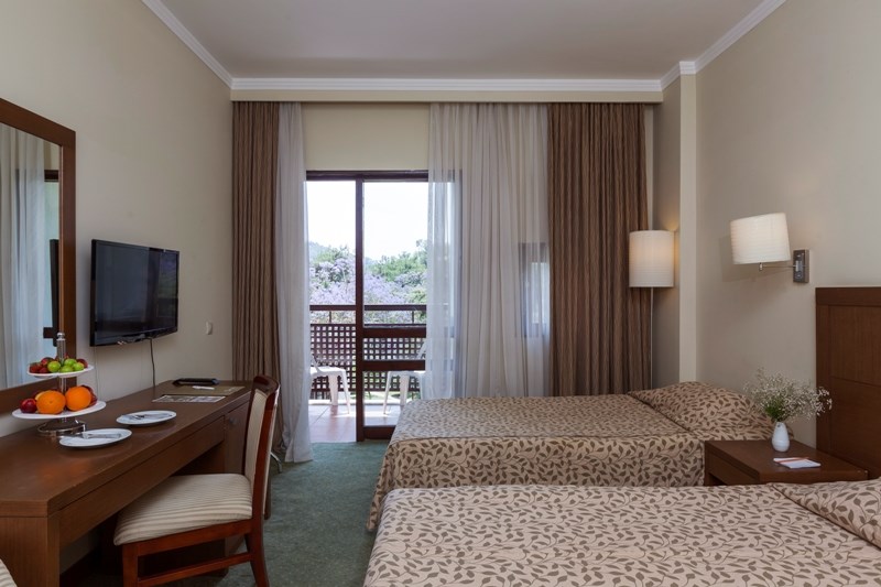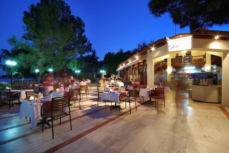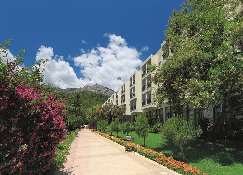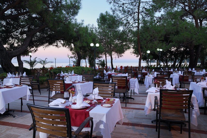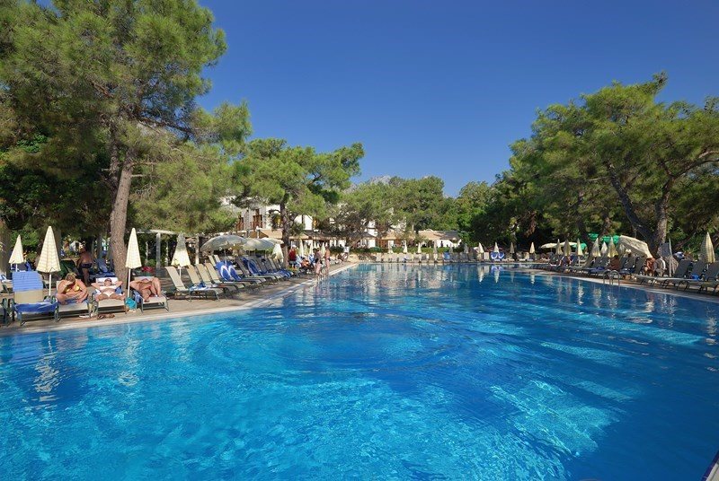 Описание Местоположение: Хотелът е разположен на 46 км от летището на град Анталия, на 6 км от град Кемер, в селището Гюнюк, на брега на морето. В хотела: Състои се от една 4-етажна сграда Main Building и четиринадесет 2-етажни Bungalow. Main Building: 174 standard room (макс. 3 чов., 16–23 м2); 80 standard roоm without balcony (макс. 3 чов., 16–23 м2); 27 едностайни junior suite (от тях 8 стаи без балкон; макс. 3+1 чов., 29 м2) Bungalow: 56 bungalow с тераса (макс. 2 чов., 18 м2); 56 bungalow с балкон (макс. 3 чов., 23 м2) Стаи: вана, сешоар, централен климатик (Main building), индивидуален климатик (Bungalow), TV, телефон, мини-бар (безалкохолни напитки при пристигане, ежедневно вода и сок - безплатно) сейф (безплатно), под - мокет (Main building), под - теракота (Bungalow), балкон (не навсякъде), почистване на стаята - ежедневно, смяна на спалното бельо - 3 пъти седмично Плаж: Собствен, пясък/чакъл. Кей. Бар на плажа: използва се pool bar. При басейна и на плажа: чадъри, шезлонги, матраци – безплатно. Плажни кърпи: безплатно. Безплатни Услуги: турска баня, сауна, фитнес салон, аеробика, водна аеробика, плажен волейбол, 4 тенис корта с твърдо покритие (през деня),тенис на маса, дартс, скуош, безмоторни водни спортове, анимационна програма, дискотека, безжичен интернет (на лоби) Платени Услуги: масаж, джакузи, освететление на тенис кортовете, отдаване под наем на ракети за тенис и топките, билярд, моторните спортове, уиндсърфинг, интернет-кафе Удобства: основен ресторант, 2 ресторанта а-ла-карт (рибен, турски и италиански - с предварителна заявка, посещението на всеки ресторант по време на престоя веднъж - безплатно), 4 бара, 3 открити басейна, закрит басейн, 3 водни пързалки, лекарски кабинет, СПА-център, фризьор, магазини, пералня, 4 конферентни зали (от 25 до 400 чов.) За децата: детски басейн, детска площадка, мини клуб (4-12 год.), детегледачка (платено)