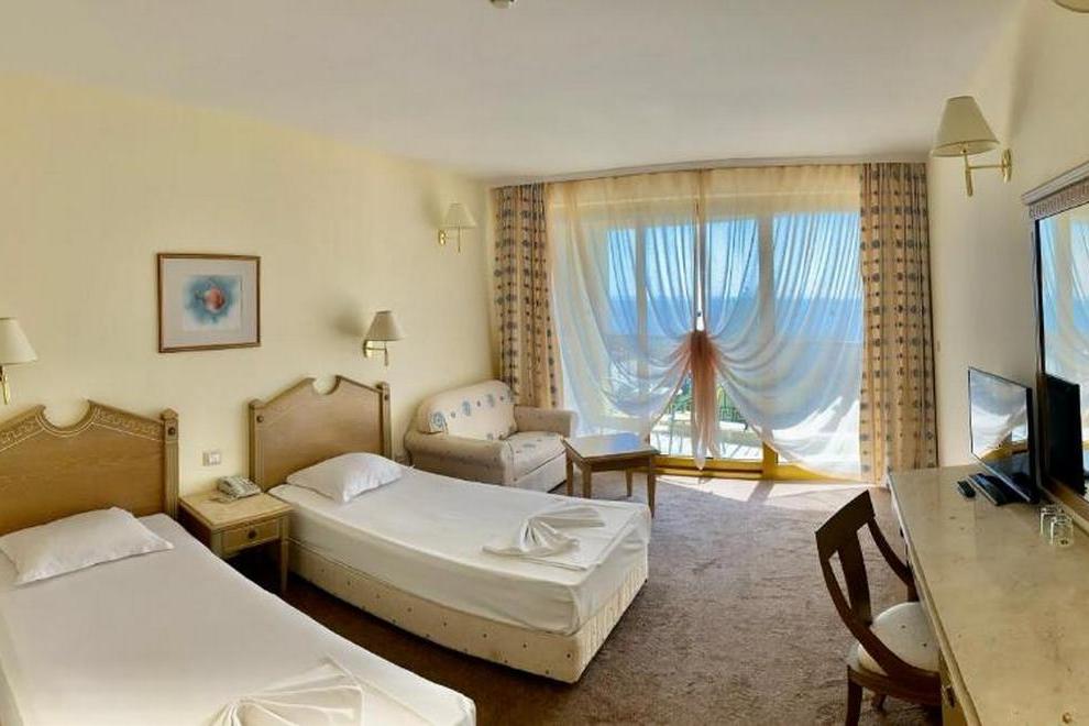 Разположен на самия бряг, хотелът Ви предлага прекрасна панорама и спокойствие, нарушавано само от вълните на морето. Със своя луксозен интериор, той е перфектно място за Вашата почивка. Поради спецификата на терена, на който е разположен, комплексът не е подходящ за гости с двигателни увреждания.