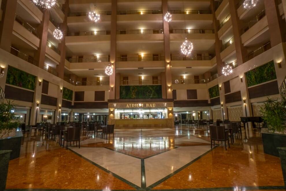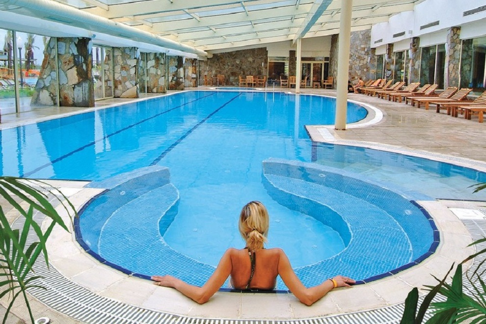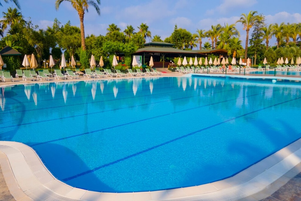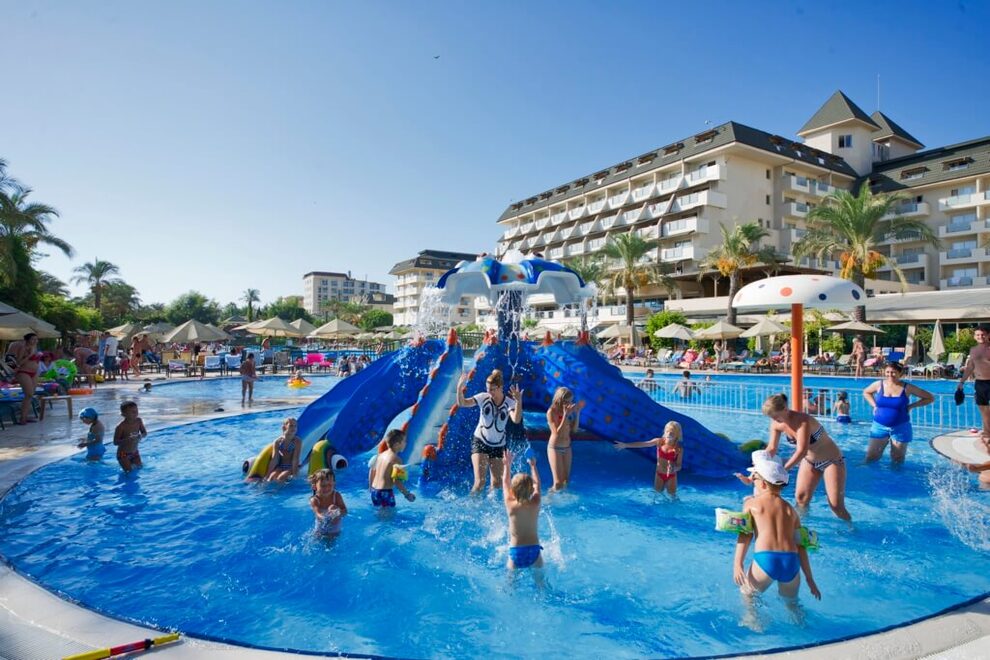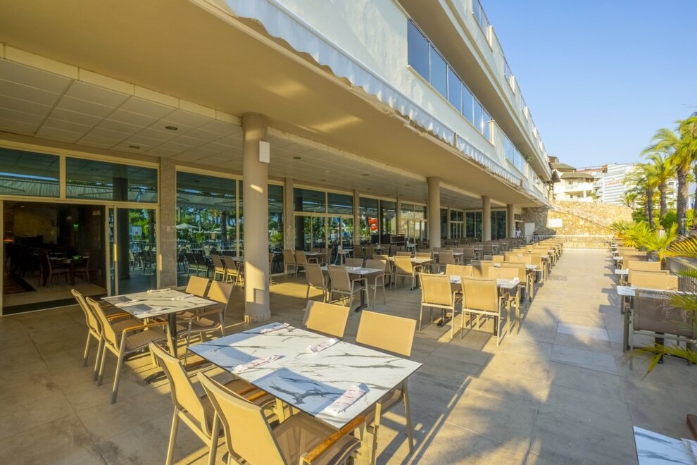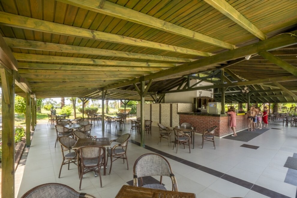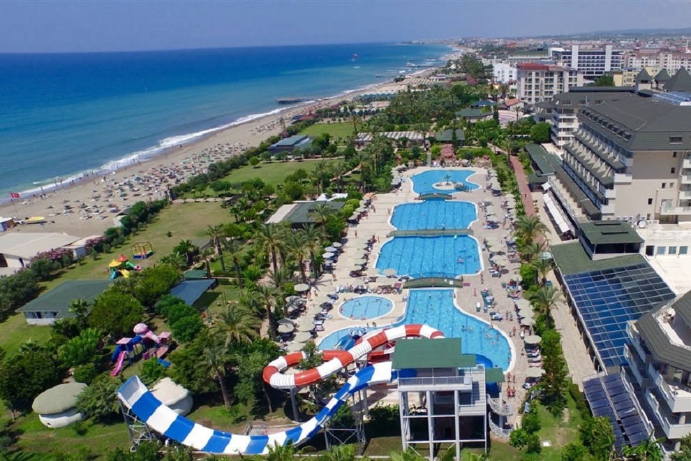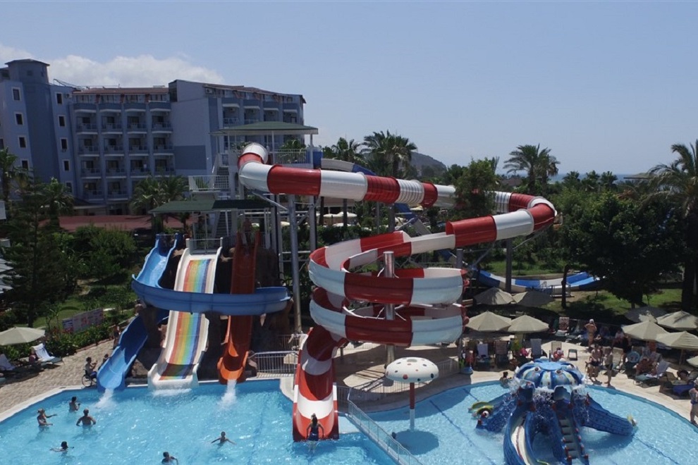 Собствен пясъчен плаж с дължина 150 метра. Безплатен бар на плажа. Два открити басейна, закрит басейн, три водни пързалки. На басейна и плажа чадърите, шезлонгите и матраците са безплатни. Плажни кърпи се дават срещу депозит.