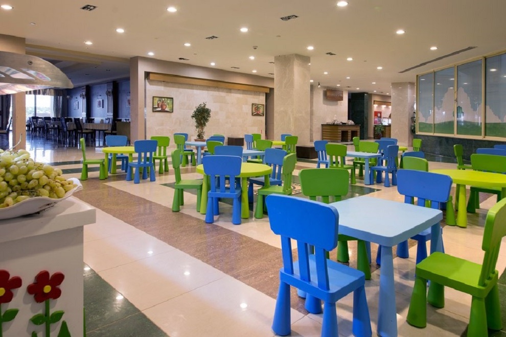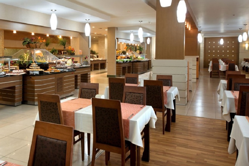 Основен ресторант, детски бюфет, 2 ресторанта а`ла карт (турски и рибен), снек ресторант, 5 бара, кафене. Закуска, късна закуска, обяд, закуски през деня, чай, кафе, сладкиши, вечеря, нощна супа. Безплатно се консумират алкохолни и безалкохолни напитки местно производство. Вносните алкохолни напитки се заплащат.