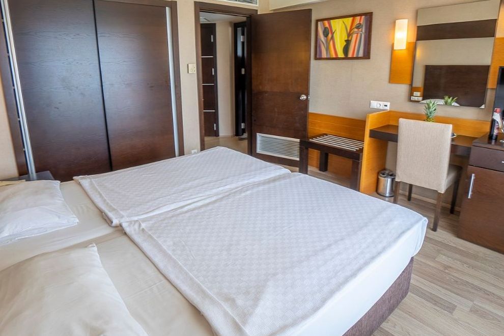 Всички стаи са оборудвани с централен климатик, телевизор, телефон, минибар (зареден с безалкохолни напитки и вода при настаняване, ежедневно се зарежда с вода), сейф (платен), баня, сешоар, балкон.