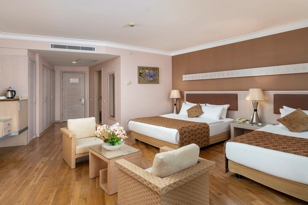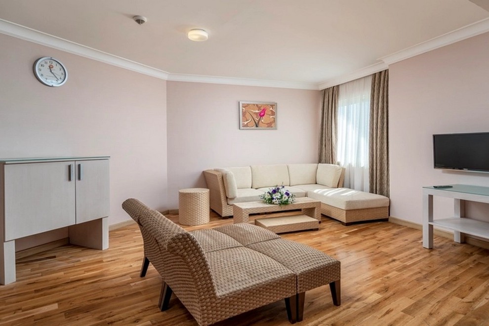 Хотелът посреща гостите си в климатизирани стаи, в които има телевизор, телефон, баня с вана, сешоар, минибар, сейф, балкон. Стаите се почистват ежедневно, спалното бельо се сменя 2 пъти седмично.