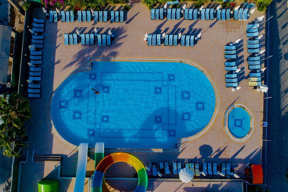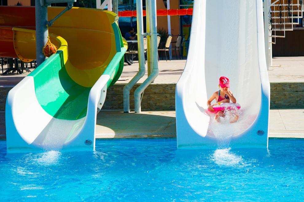 Хотелът има собствен пясъчно-чакълест плаж, на 350 м от хотела, до който се стига през подлез. На разположение на гостите е открит басейн с две пързалки. Чадъри, шезлонги, матраци и плажни кърпи се ползват безплатно.