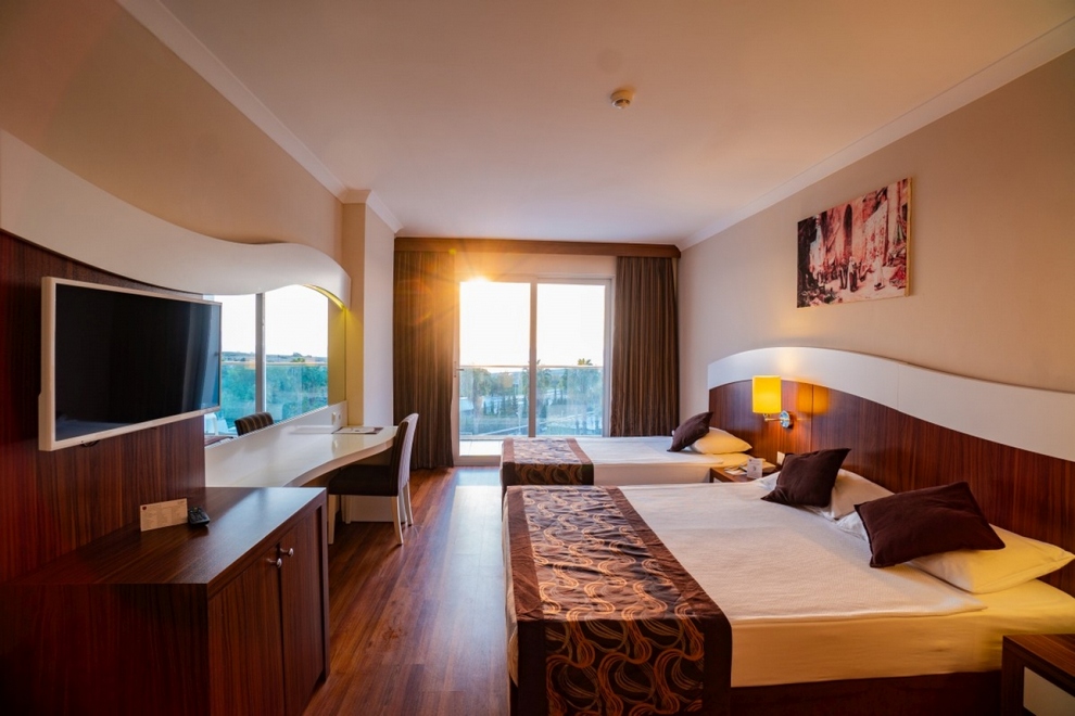 Хотелът посреща гостите си в 313 климатизирани стаи, от които 203 Standard room (28 кв.м), 102 Family room (40 кв.м), 8 Superior family Room (40 кв.м). Стаите са оборудвани с телевизор, телефон, минибар, сейф, баня с душ, сешоар. Почистване на стаите - всеки ден, смяна на спалното бельо - веднъж седмично. .
