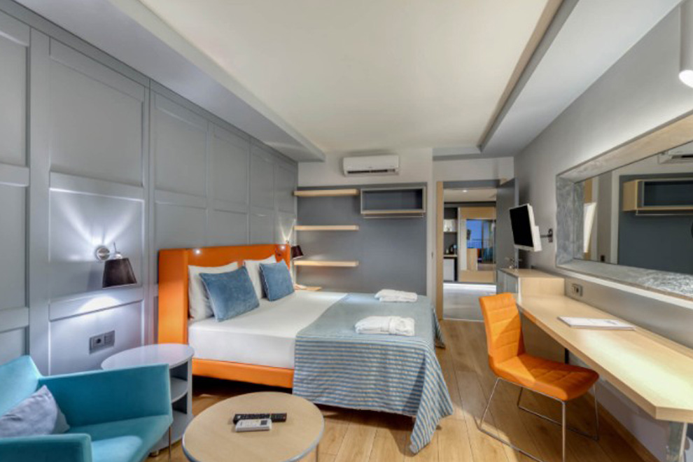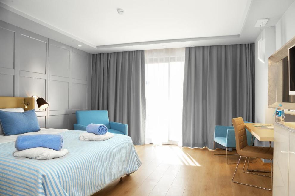 Хотелът посреща гостите си в 285 стаи, разположени в две сгради. В климатизираните стаи има сателитна телевизия, телефон с директно избиране, баня с душ, сешоар, сет за кафе и чай, минибар, сейф (безплатно), балкон, Wi-Fi. Стаите се почистват ежедневно, спалното бельо се сменя три пъти седмично.
