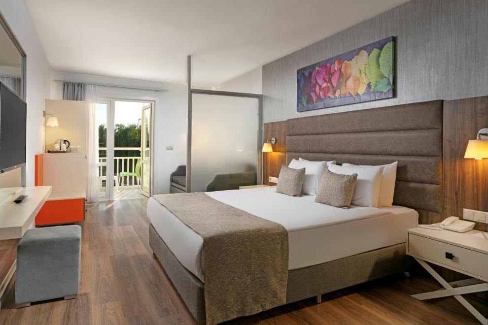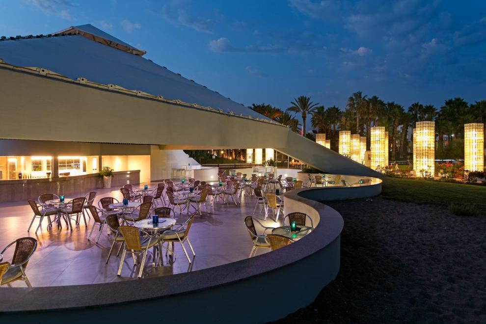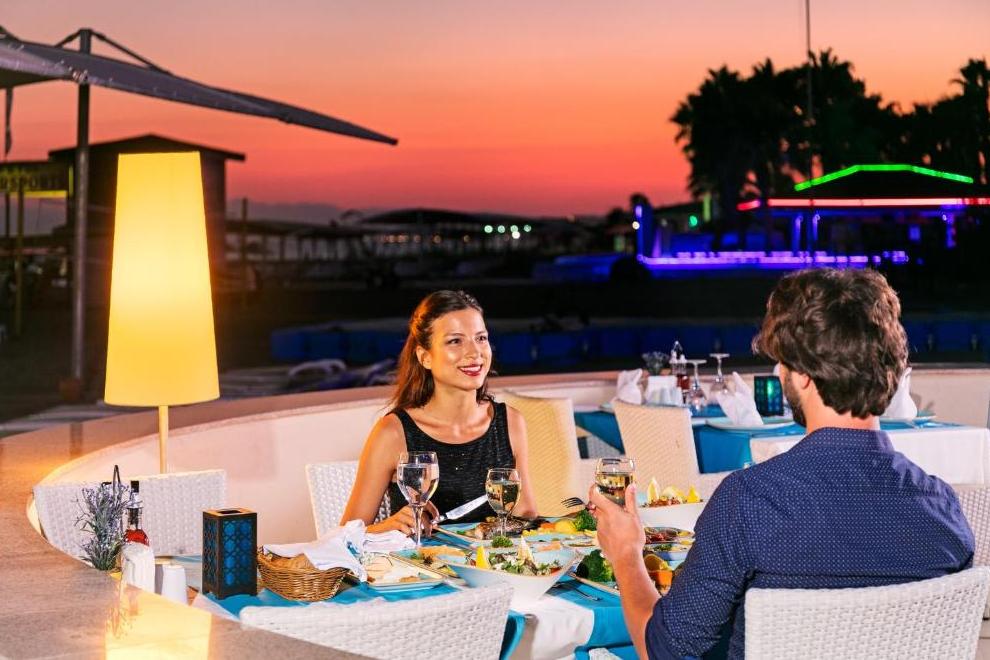 Система All inclusive. Местни алкохолни и безалкохолни напитки, както и алкохолни и безалкохолни коктейли, топли напитки, които са включени в концепцията. Ресторант Palm Garden (основен ресторант), Снек ресторант на плажа, сладкарски кът в лоби, сладолед се предлага в снек ресторанта на плажа, нощна супа, студени закуски, салати, спагети и др, а`ла карт ресторанти (турски, рибен, азиатски). Лоби бар, бар на плажа, други барове.