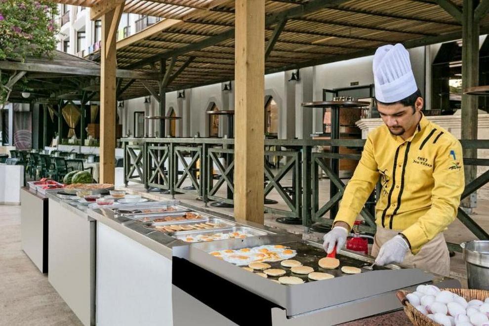 На разположение на гостите има основен ресторант с диетично и вегетарианско меню. Освежаващи напитки и закуски се поднасят в 4 бара: лоби бар, Marina Bar, бар при басейна и бар на плажа.