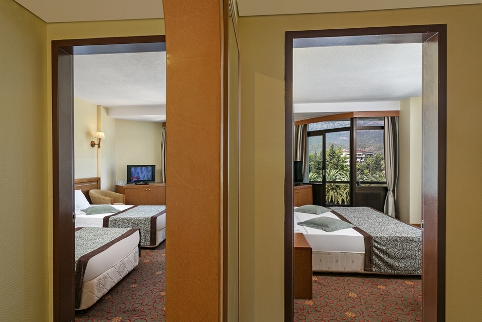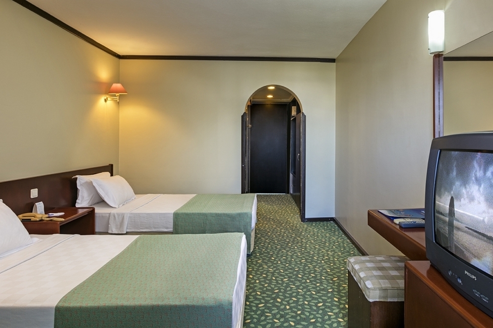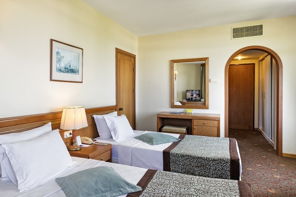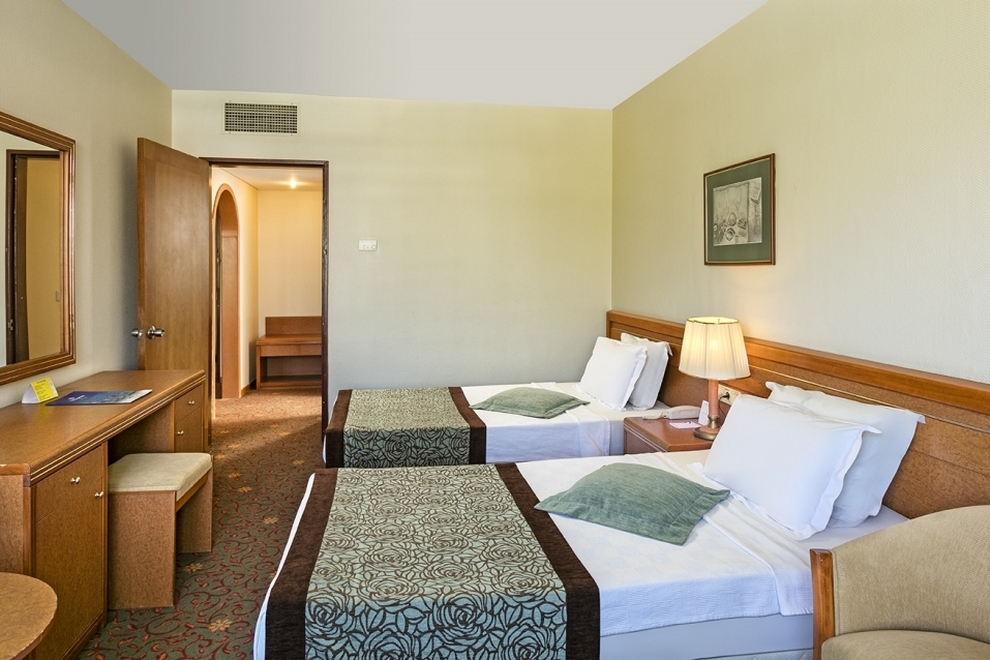 Хотелът се състои от една 5-етажна основна сграда (3 асансьора) и една 5-етажна допълнителна сграда (1 асансьор). В тях са разпределени 331 стаи, които са оборудвани с климатик, телефон, телевизор, минибар, сейф, самостоятелна баня с безплатни тоалетни принадлежности, балкон. Стаите се почистват ежедневно, смяна на спалното бельо - три пъти в седмицата.