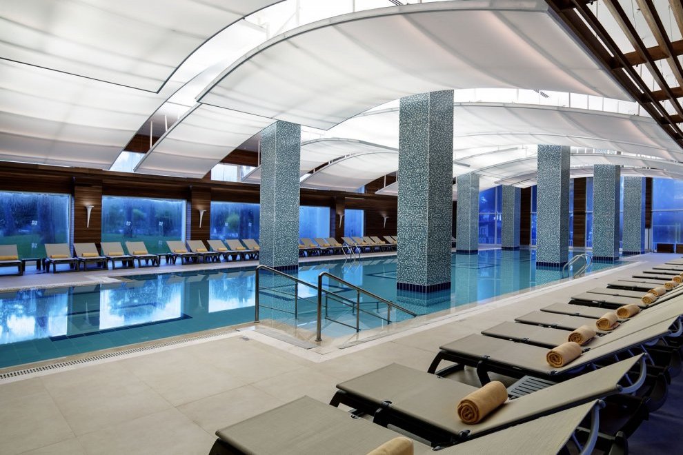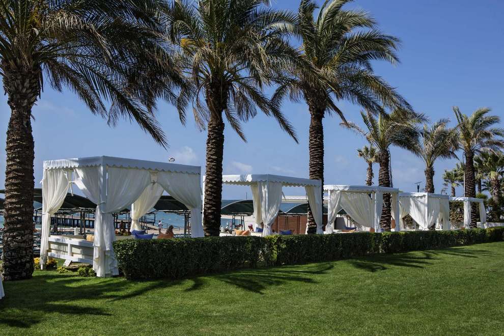Собствен пясъчен плаж, дълъг 150 м., кей и бар на плажа. 5 открити басейна и 1 закрит басейн Чадърите, шезлонгите, плажните дюшеци и хавлиите се предоставят безплатно.